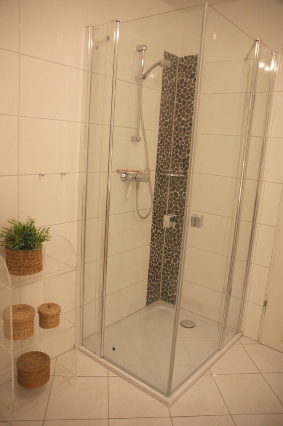 Die 80 qm große Wohnung liegt in der 1. Etage und wird für maximal 4 Personen vermietet. Die Dreizimmerwohnung teilt sich auf in einen großen Wohnraum mit integrierter Küche und Essecke. Eines der Schlafzimmer ist mit einem Doppelbett und das andere mit zwei Einzelbetten ausgestattet. Selbstverständlich ist das Badezimmer entsprechend groß und mit einer ebenerdigen Dusche, Doppelwaschtisch, Handtuchwärmer und Haartrockner etc. ausgestattet. Der Westbalkon schließt sich an den Wohnbereich an, der Ostbalkon an das Schlafzimmer. Zum Haus gehört ein Gemeinschaftsfahrradschuppen.