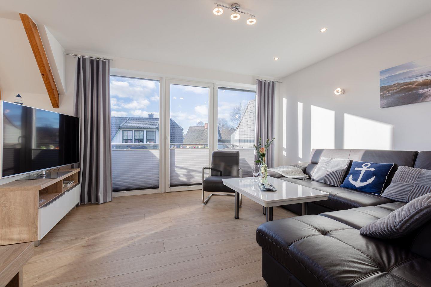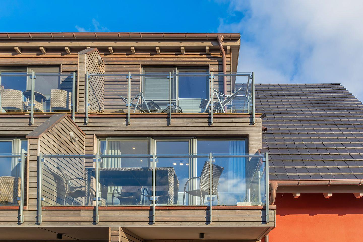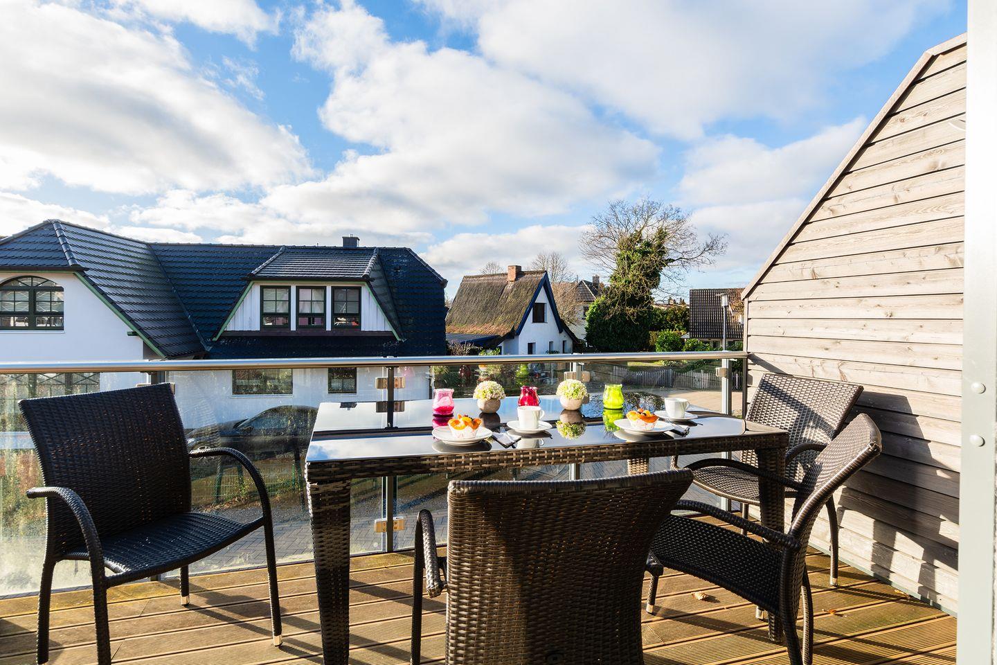 Die Maisonette-Suite Möwe in Zingst bietet modernen Komfort mit Sauna und zwei Balkonen nahe der Ostsee.