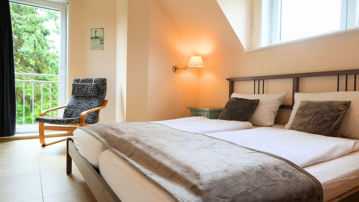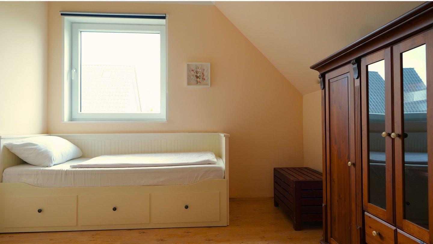 Eines der Schlafzimmer ist speziell für die kleinen Gäste hergerichtet. Eine Spielecke mit vielen Kissen und Spielen bieten bei wenig Sonnenschein Beschäftigung für die Kinder.
