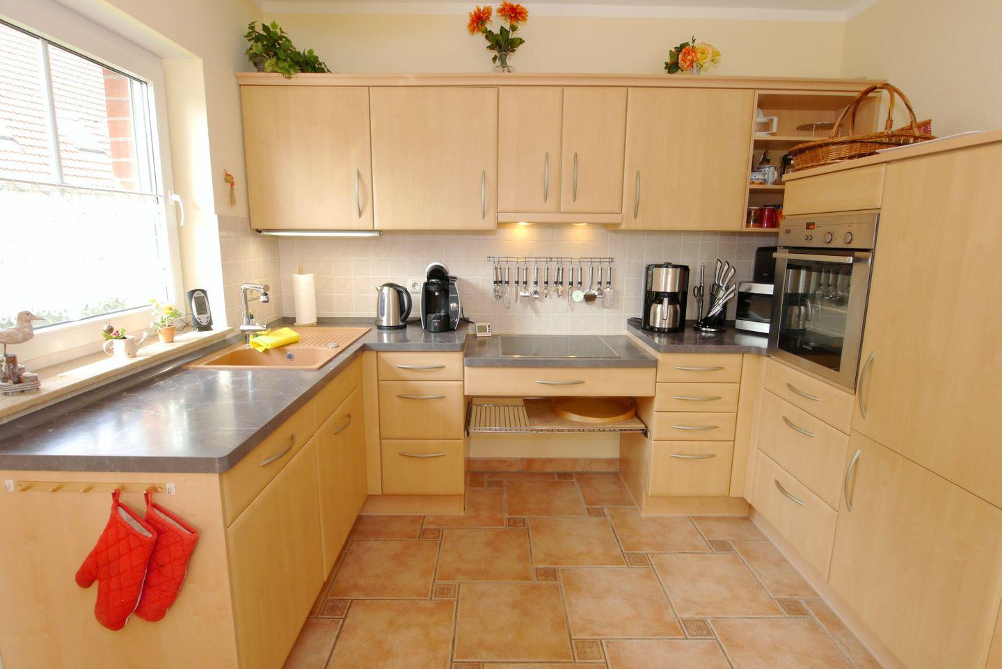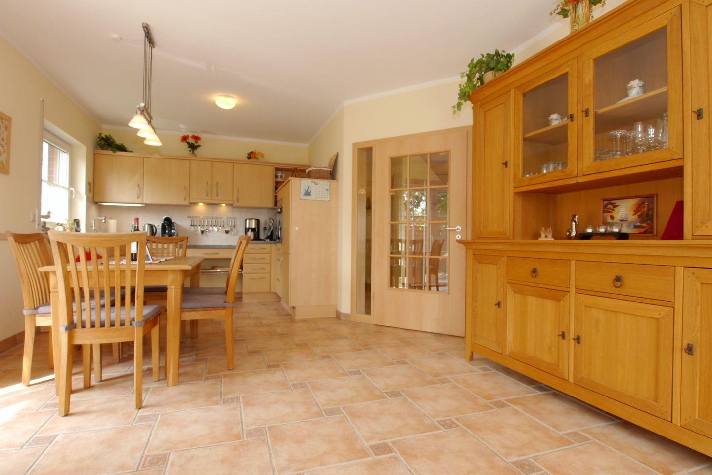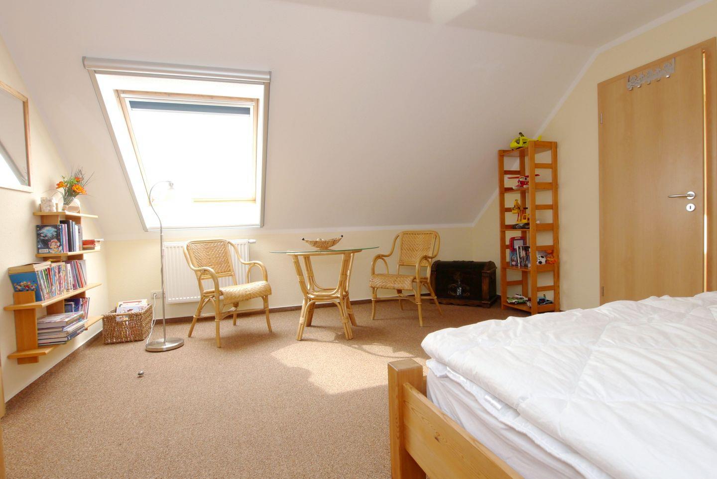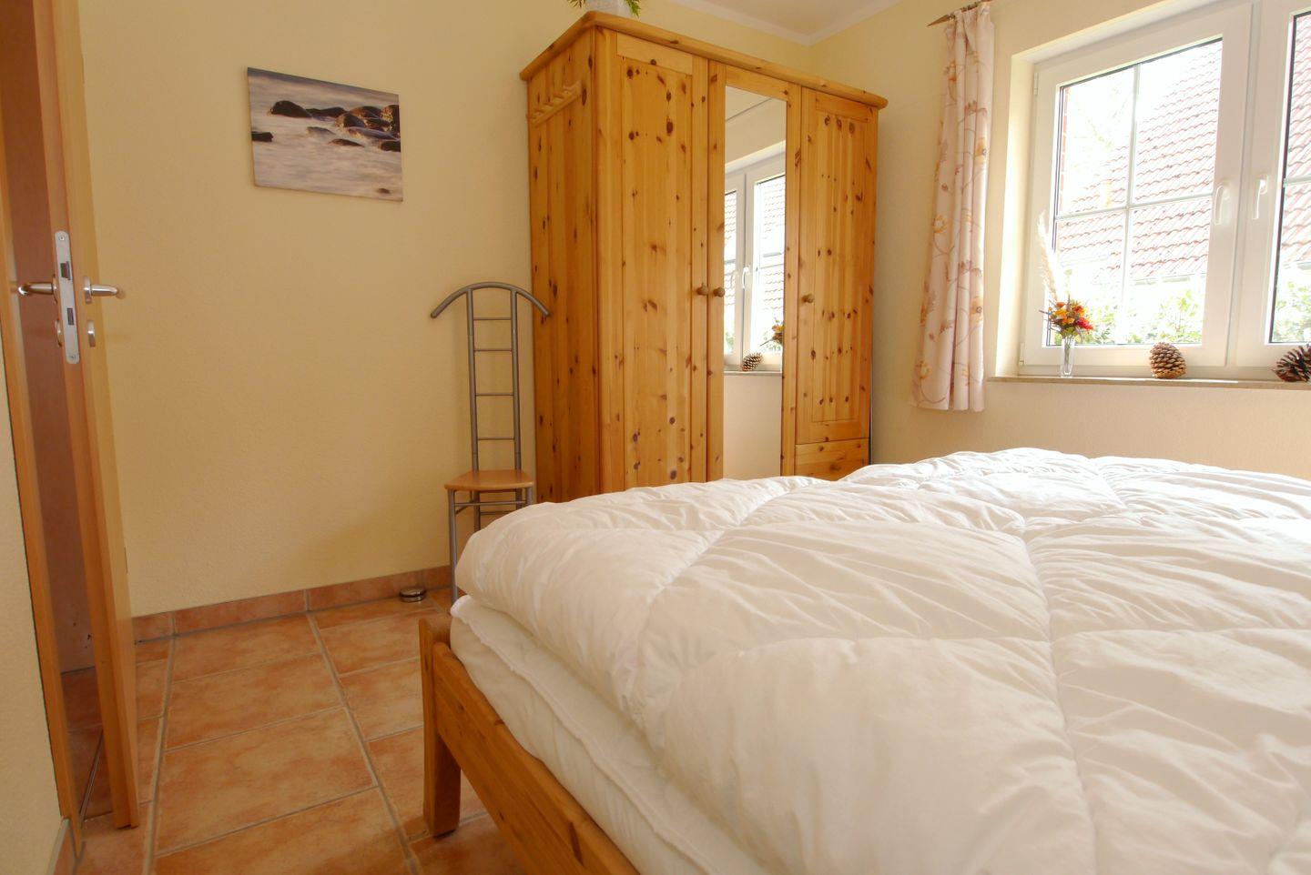 Dieses 100 qm große Einzelhaus wird für bis zu 6 Personen angeboten. Das Wohnzimmer mit Kaminofen, Essecke und großzügig ausgestatteter Küche befindet sich im Erdgeschoss. Hier erfolgt auch der Zugang zur Süd-Westterrasse. Im unteren Bereich sind zwei Schlafzimmer zu finden, eines ist mit einem Doppelbett und das andere mit zwei Einzelbetten eingerichtet. Hier stehen auch ein Badezimmer mit begehbarem Duschbereich und ein Gäste-WC zur Verfügung. Im Obergeschoss ist das dritte Schlafzimmer, ebenfalls mit Doppelbett, zu finden.