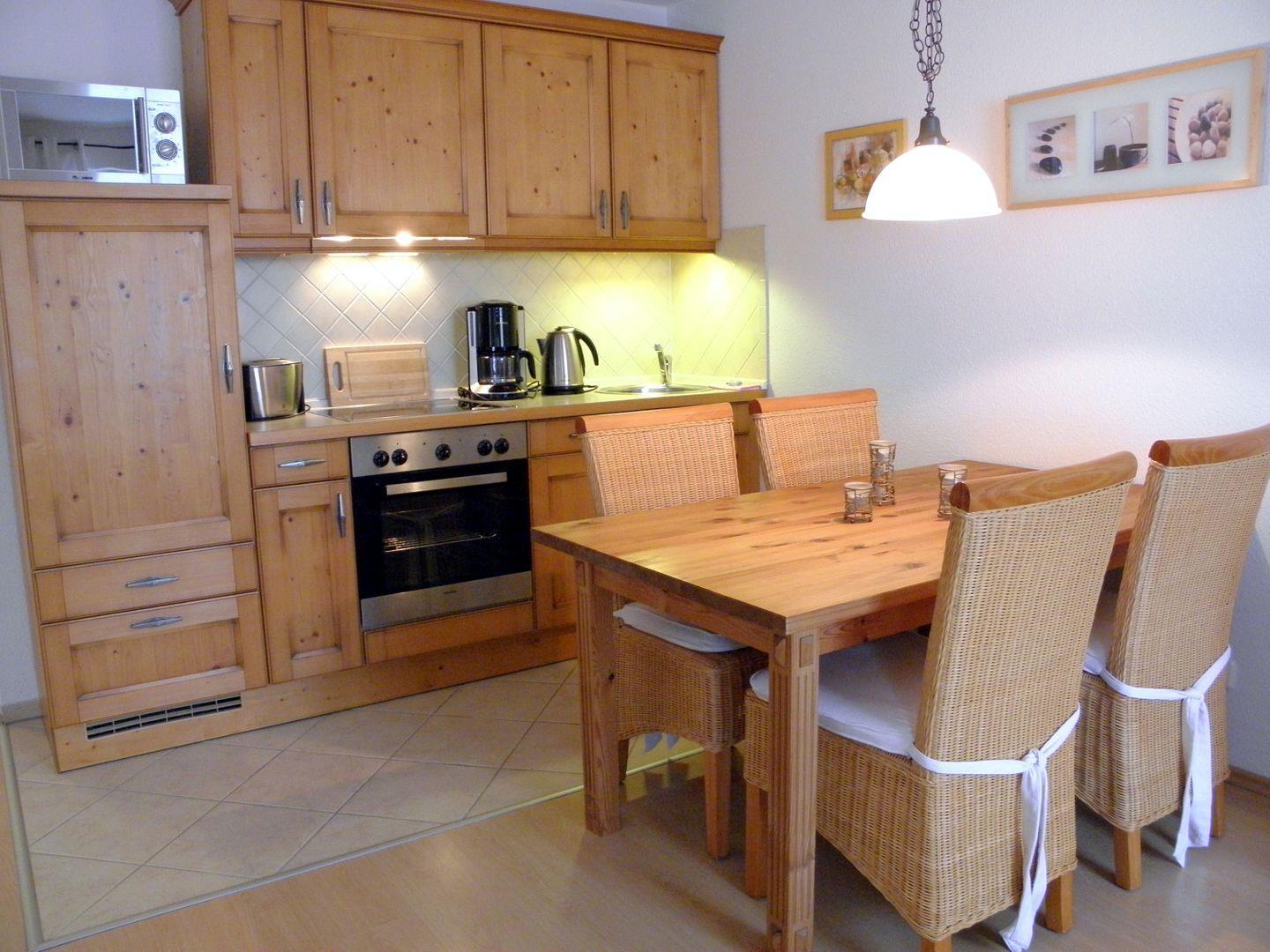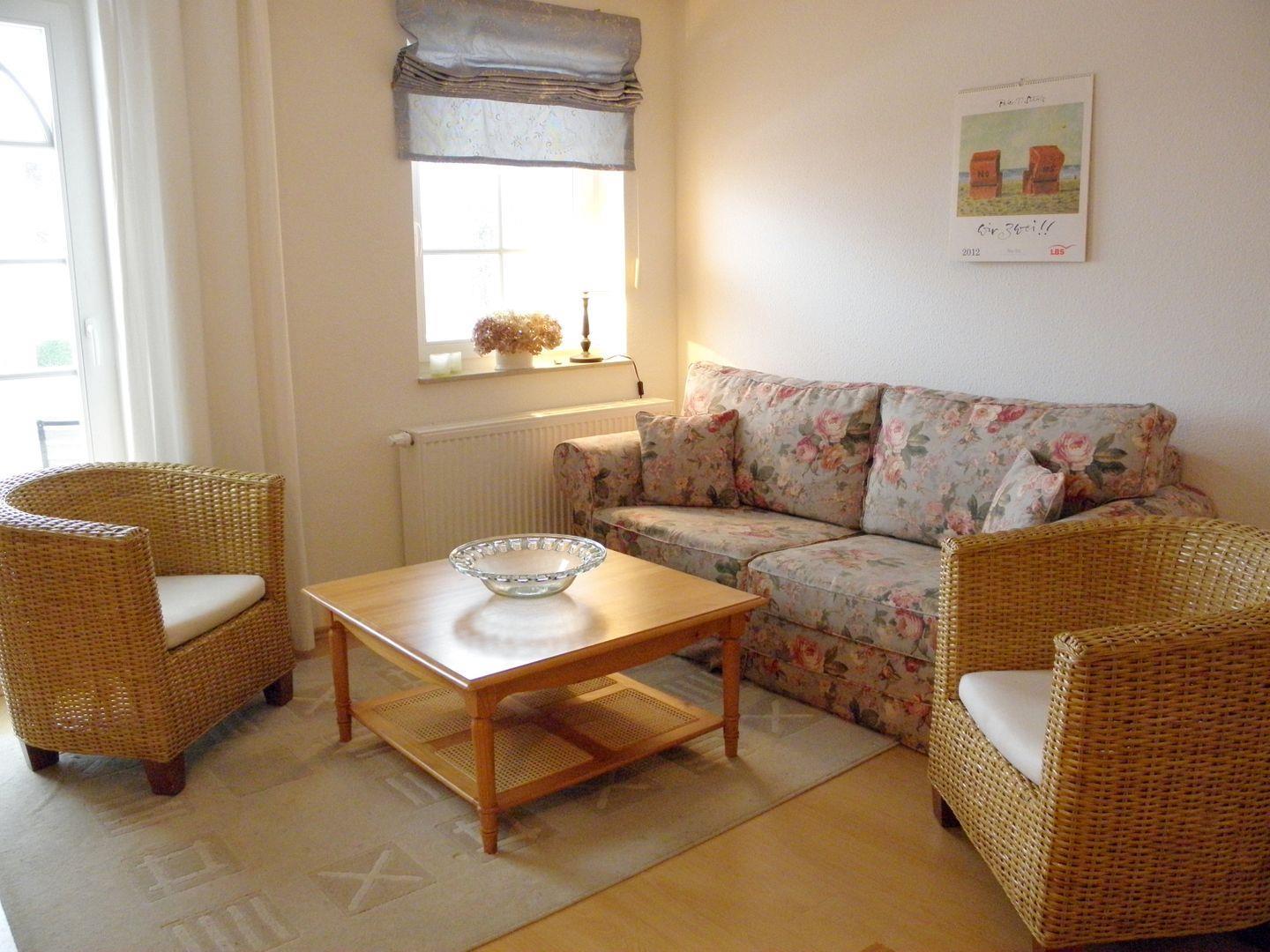 Die 50 qm große Wohnung liegt im 1. Obergeschoss und wird für maximal 2 Erwachsene und 2 Kinder angeboten. In den Wohnraum sind die Essecke und die Küche integriert, von hier gelangen Sie auch auf den möblierten Westbalkon. Ihnen stehen ein Schlafzimmer mit Doppelbett und eine Schlafcouch im Wohnzimmer zur Verfügung. Das Badezimmer ist mit Dusche und WC ausgestattet. Ihre Fahrräder können Sie im zur Wohnung gehörenden Fahrradkeller unterstellen.