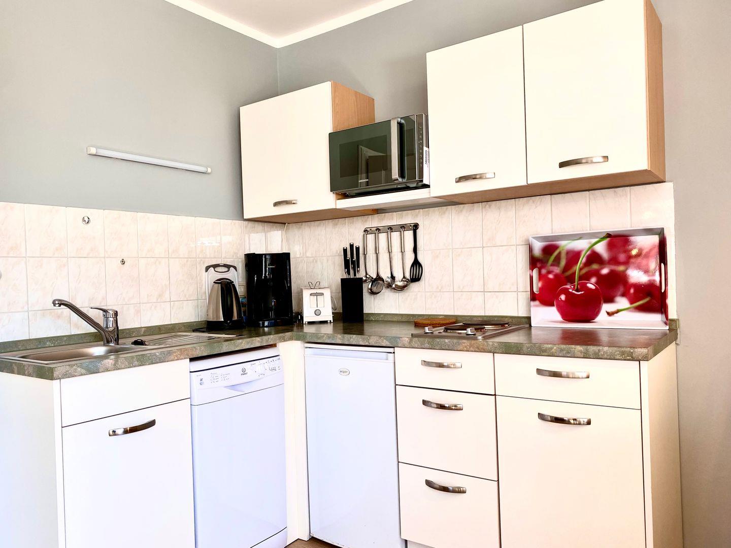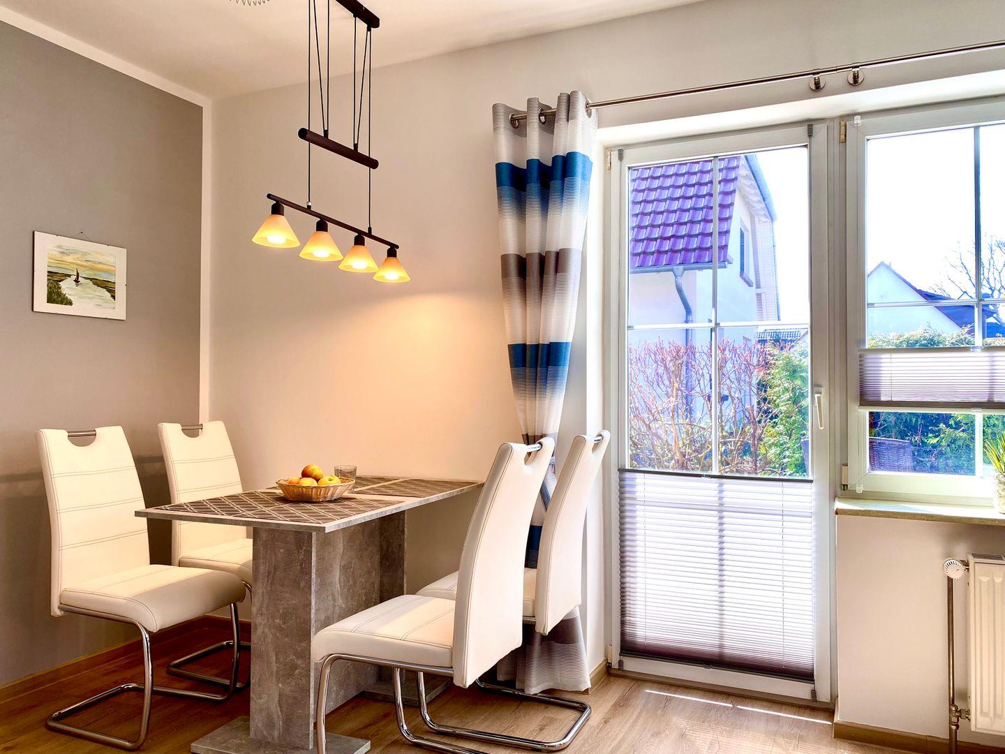 Ferienwohnung Westwind im Erdgeschoss mit großer Terrasse, moderner Küche und ruhigem Garten in Zingst.