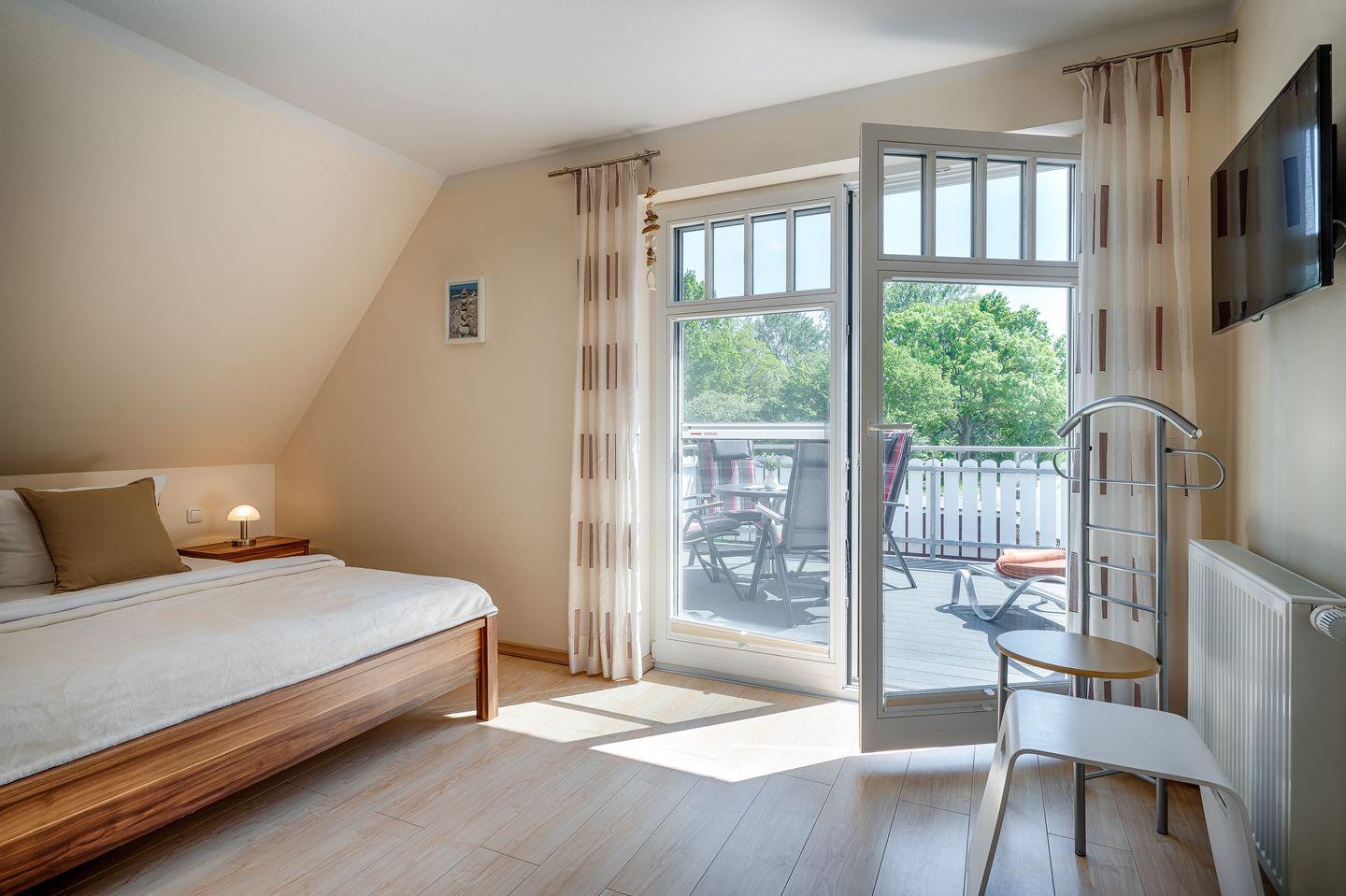 1 Schlafzimmer mit Doppelbett (1,80x2,00m), verstellbare Lattenroste, TV
