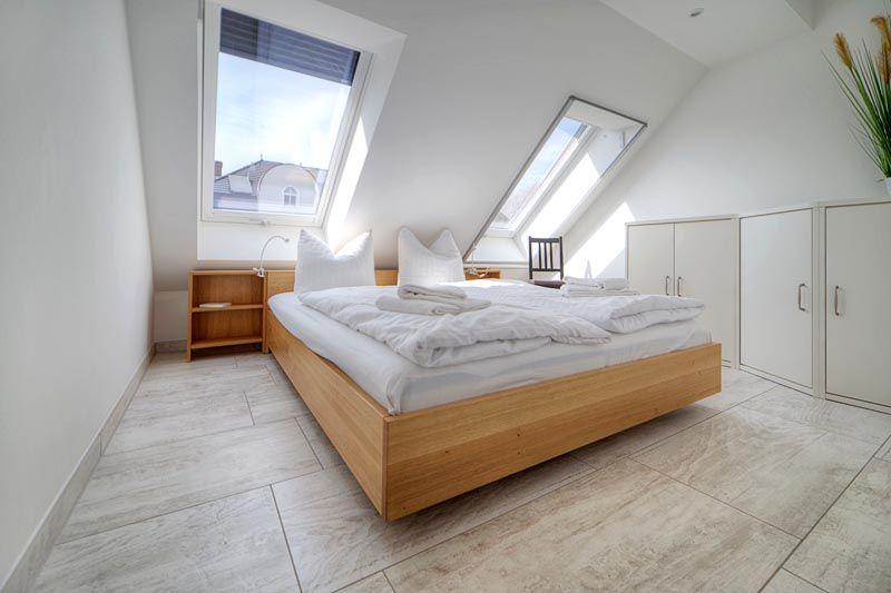 Schlafzimmer mit Doppelbett (1,60x2,00m), verstellbaren Lattenrosten,