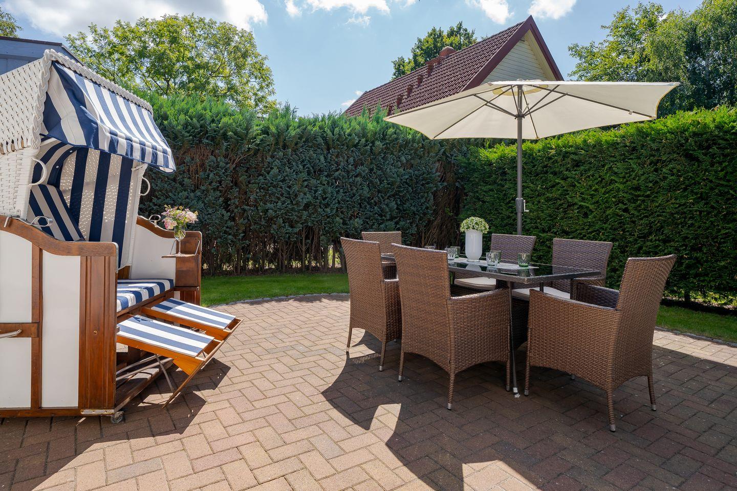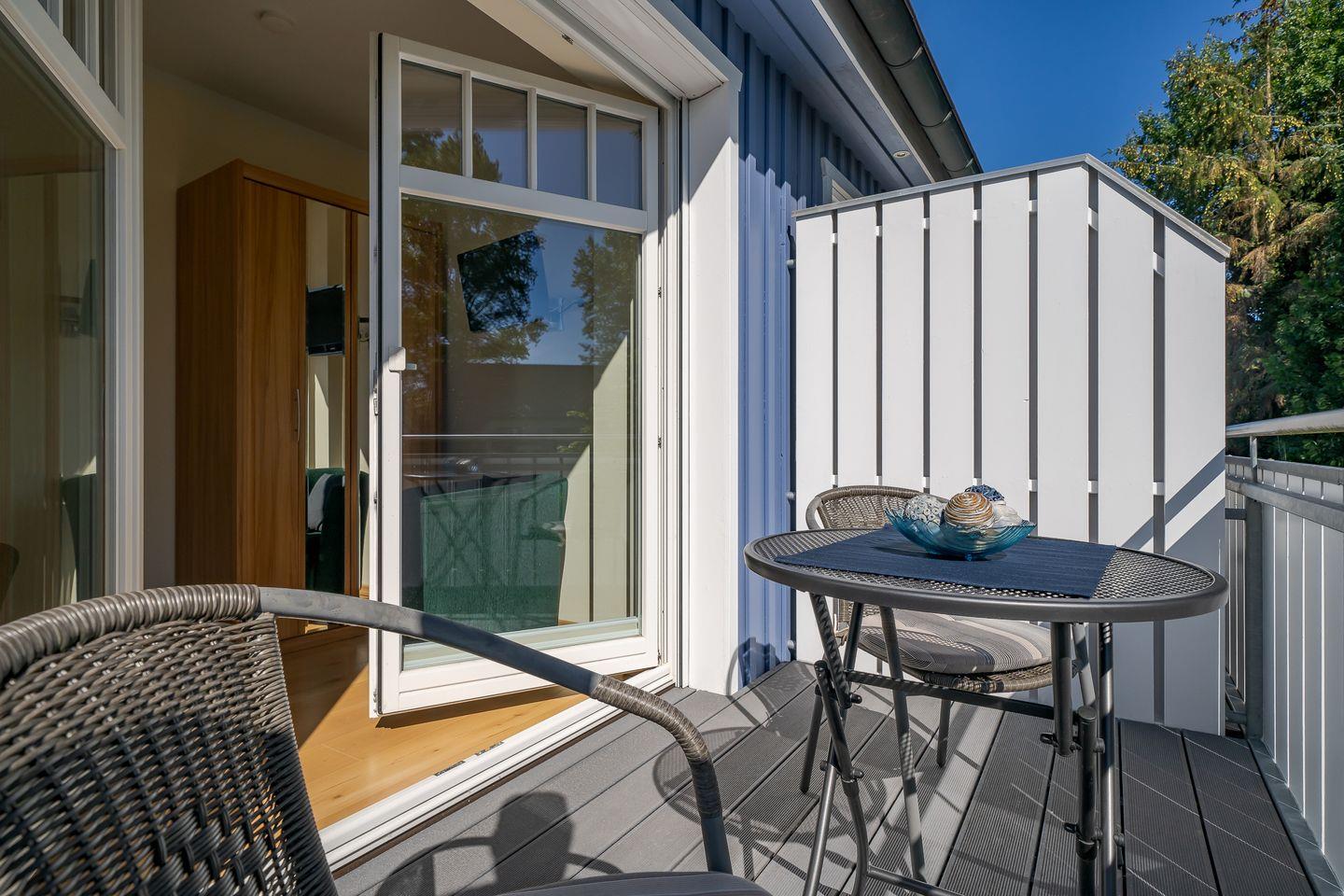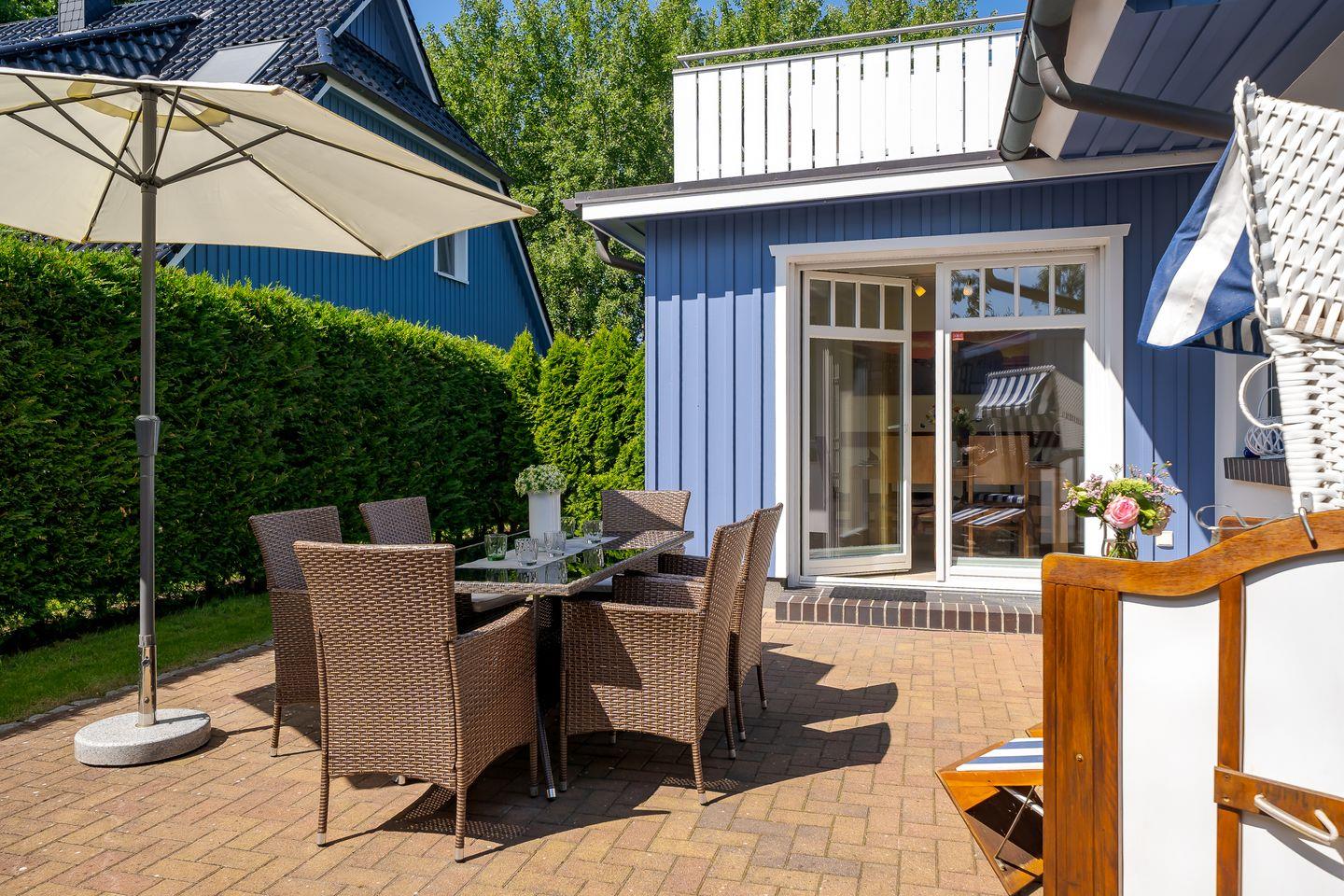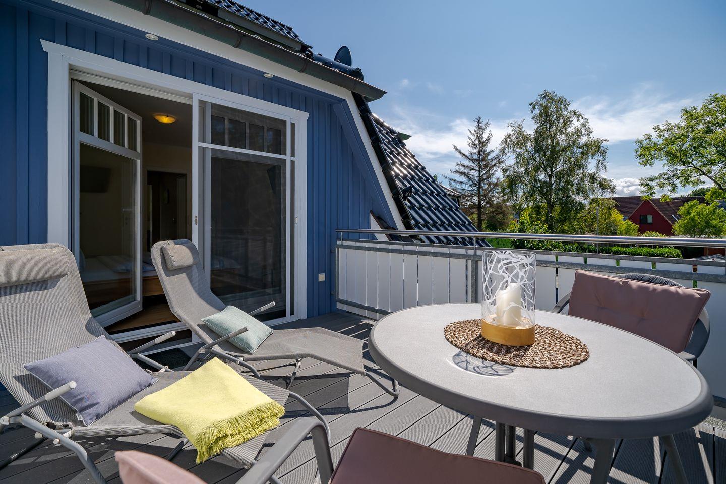 Moderne Ferienhaushälfte in Zingst mit Sauna, Terrasse, Balkon und voll ausgestatteter Küche für erholsame Urlaubstage.