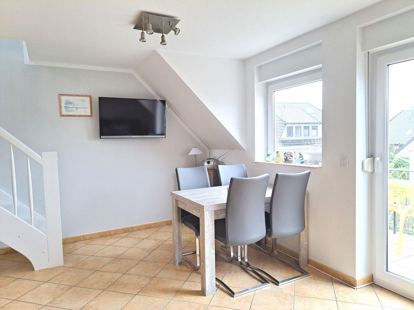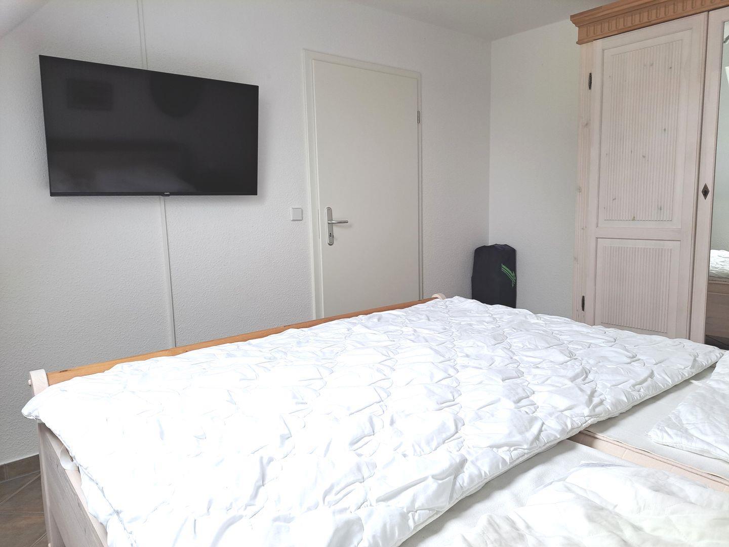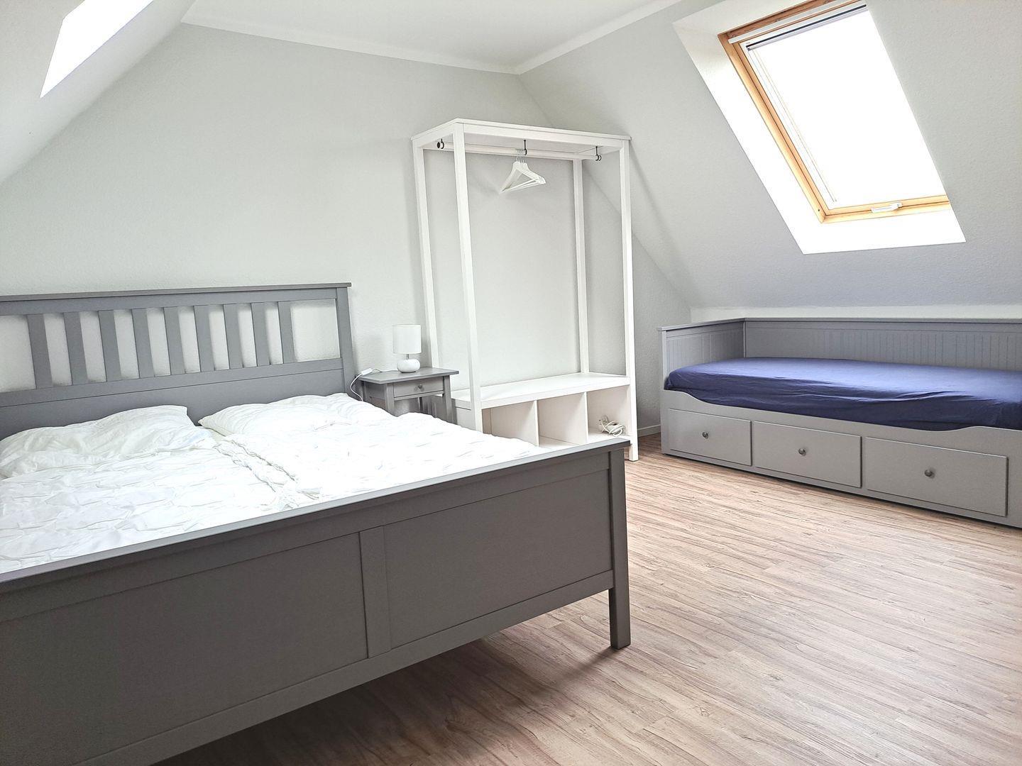 Diese gemütliche Obergeschosswohnung mit einem schönen Balkon mit Westausrichtung wird für maximal 2 Erwachsene und 2 Kinder vermietet. Die Wohnung verfügt über 2 Schlafzimmer mit je einem Doppelbett. Das Schlafzimmer im Dachgeschoss verfügt zudem über ein zusätzliches Einzelbett und 1 Badezimmer mit Dusche. Der Bodden ist fußläufig sehr gut erreichbar, bis zur Kranichbeobachtung sind es nur ca. 5 Gehminuten.