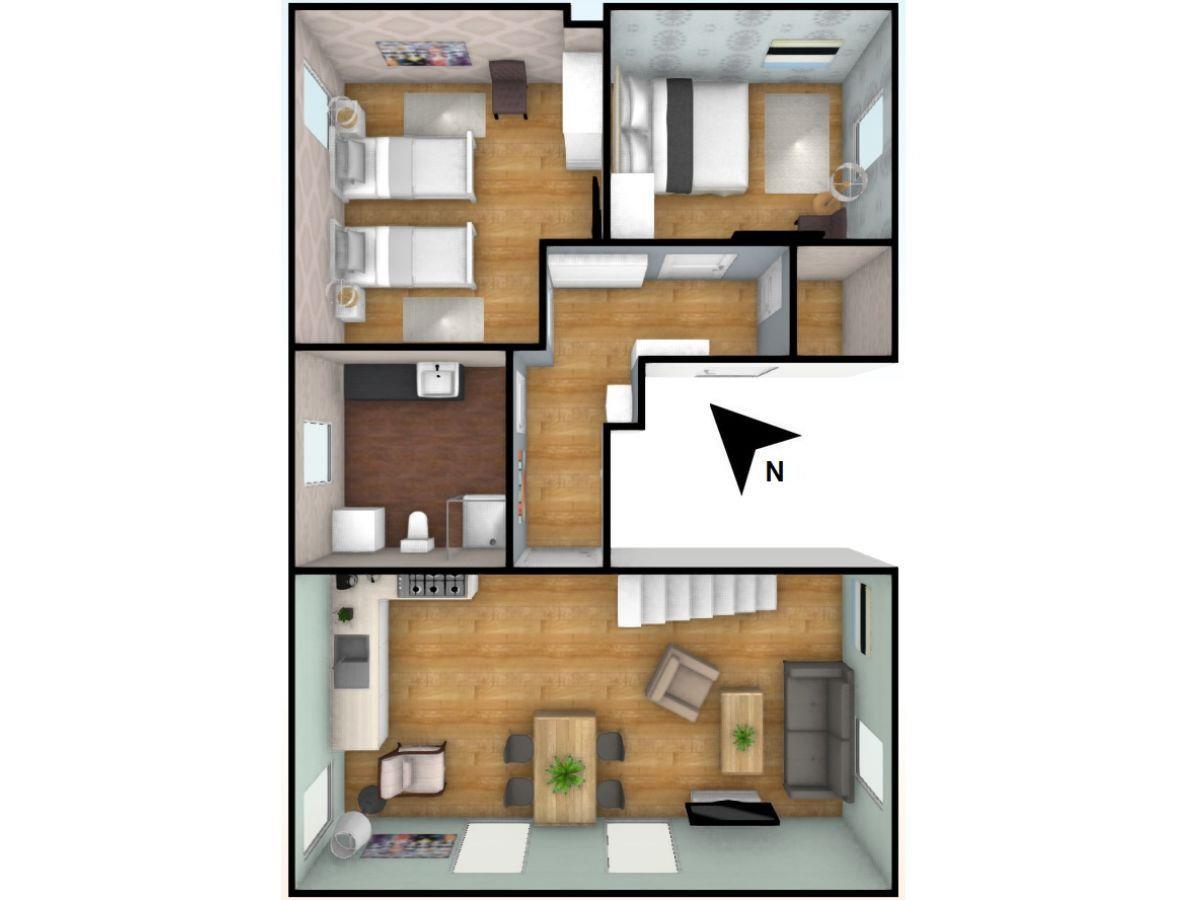 Die Wohnung verfügt über ein Schlafzimmer mit Doppelbett (durchgehende Matratze) und ein weiteres Schlafzimmer mit zwei Einzelbetten. Im großzügig geschnittenen Bad findet sich viel Abstellmöglichkeit für Ihre Kosmetika sowie eine Waschmaschine.