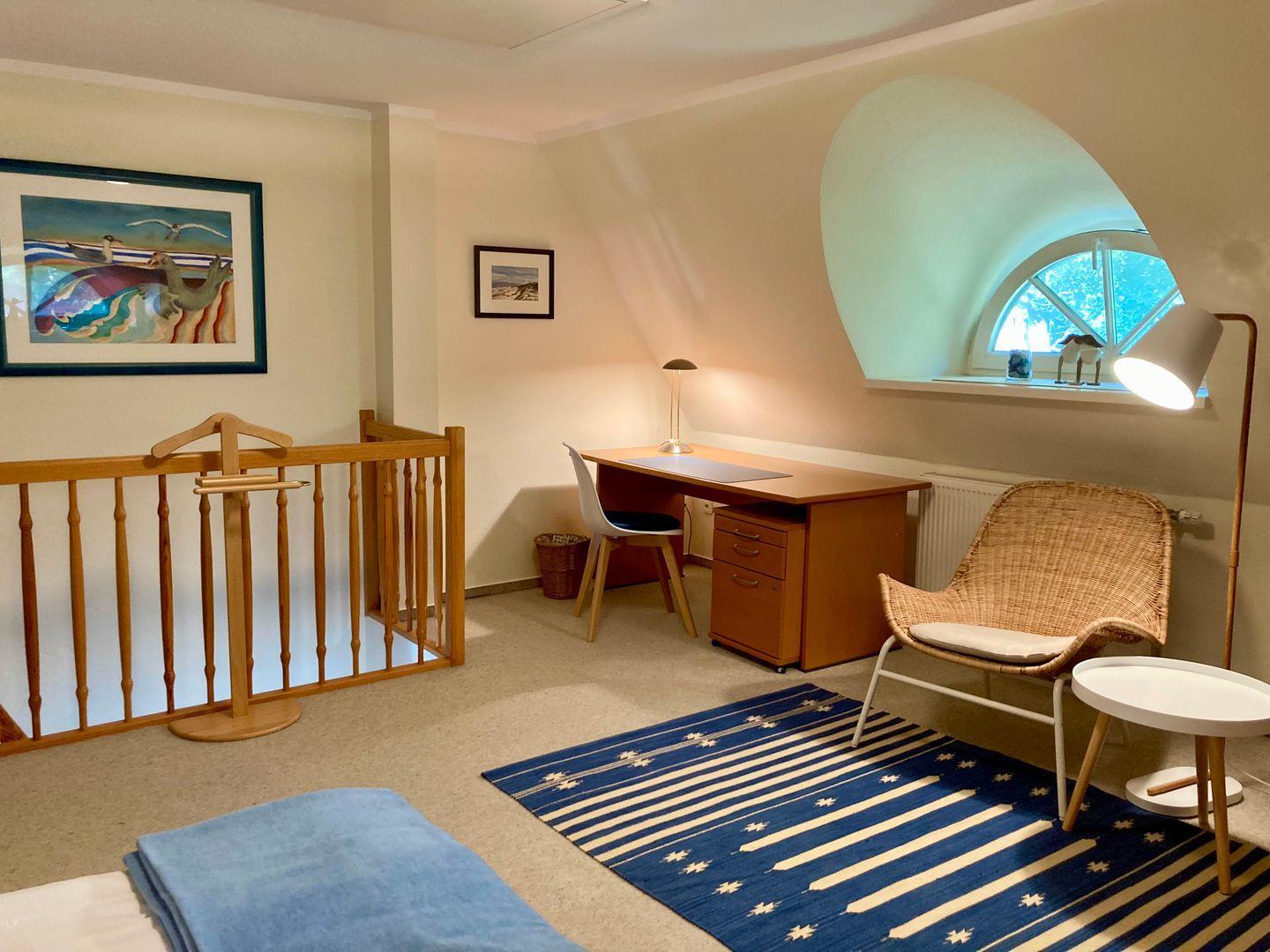 Außerdem befinden sich auf dieser Etage ein Badezimmer mit Dusche sowie ein kleiner Schlafraum mit zwei Einzelbetten.