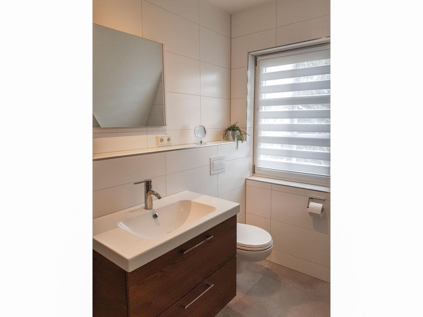 Die Wohnung verfügt außerdem über ein modernes Badezimmer mit bodengleicher Dusche, Waschbecken und WC. Ein Haartrockner und ein Kosmetikspiegel ergänzen die Ausstattung. Die gesamte Unterkunft ist rauchfrei und bietet zudem eine kinderfreundliche Umgebung, mit einem Hochstuhl und Spielplätzen in der Nähe.