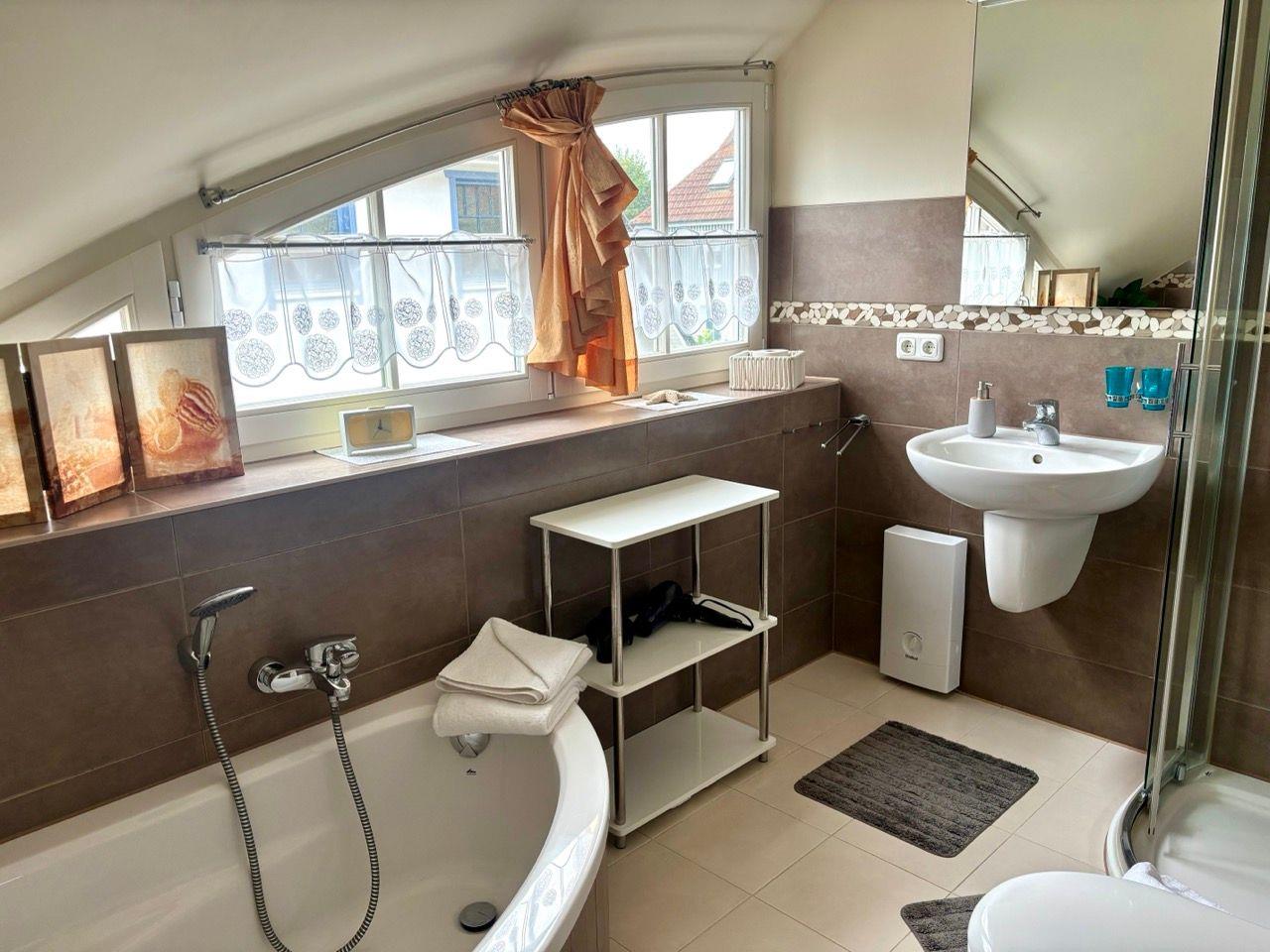 Die zwei vorhandenen Bäder sind jeweils im Erd- und Obergeschoss angeordnet.