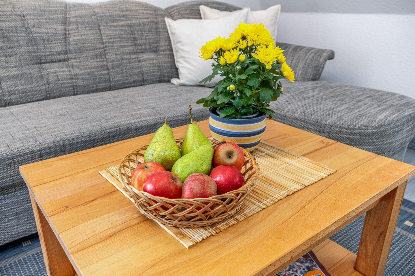 Der großzügige Wohnbereich bietet mit Sat-TV, Musikanlage, sowie Spielen und Literatur viele Möglichkeiten der Entspannung an kühlen Tagen. Auf dem Westbalkon laden Gartenmöbel und Sonnenschirm zum Verweilen ein. Die Küchenzeile ist mit Kühlschrank, Herd/ Backofen, Mikrowelle, Spülmaschine, Kaffeemaschine und viel Geschirr sehr gut ausgestattet. Badewanne, Regen-Dusche sowie eine Waschmaschine und ein Trockner für Ihre Strandtücher gehören zur Ausstattung des Badezimmers. Die Wohnung verfügt über einen eigenen PKW: Stellplatz. Die Fahrräder können Sie in einem Fahrradraum abstellen. Bitte beachten Sie, dass es sich um eine Nichtraucher-Wohnung handelt. Haustiere sind leider nicht gestattet. Sparangebote buchbar!
