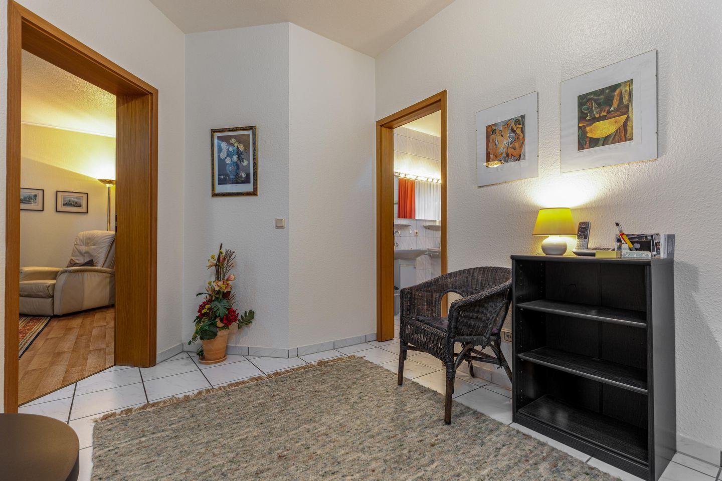 Diese 85 qm große Erdgeschosswohnung wird für 2 Personen angeboten. Über den Eingangsflur mit Garderobe gelangen Sie in das Wohnzimmer und von dort direkt auf die 26 qm große Terrasse. Diese ist zum Teil überdacht und lädt zum Entspannen ein. Alle Fenster haben Außenjalousien (teils elektrisch). Das Schlafzimmer mit einem separaten Fernseher ausgestattet. Die Wohnung ist zentral gelegen und Sie sind in einer Minute am wunderschönen Strand von Zingst.