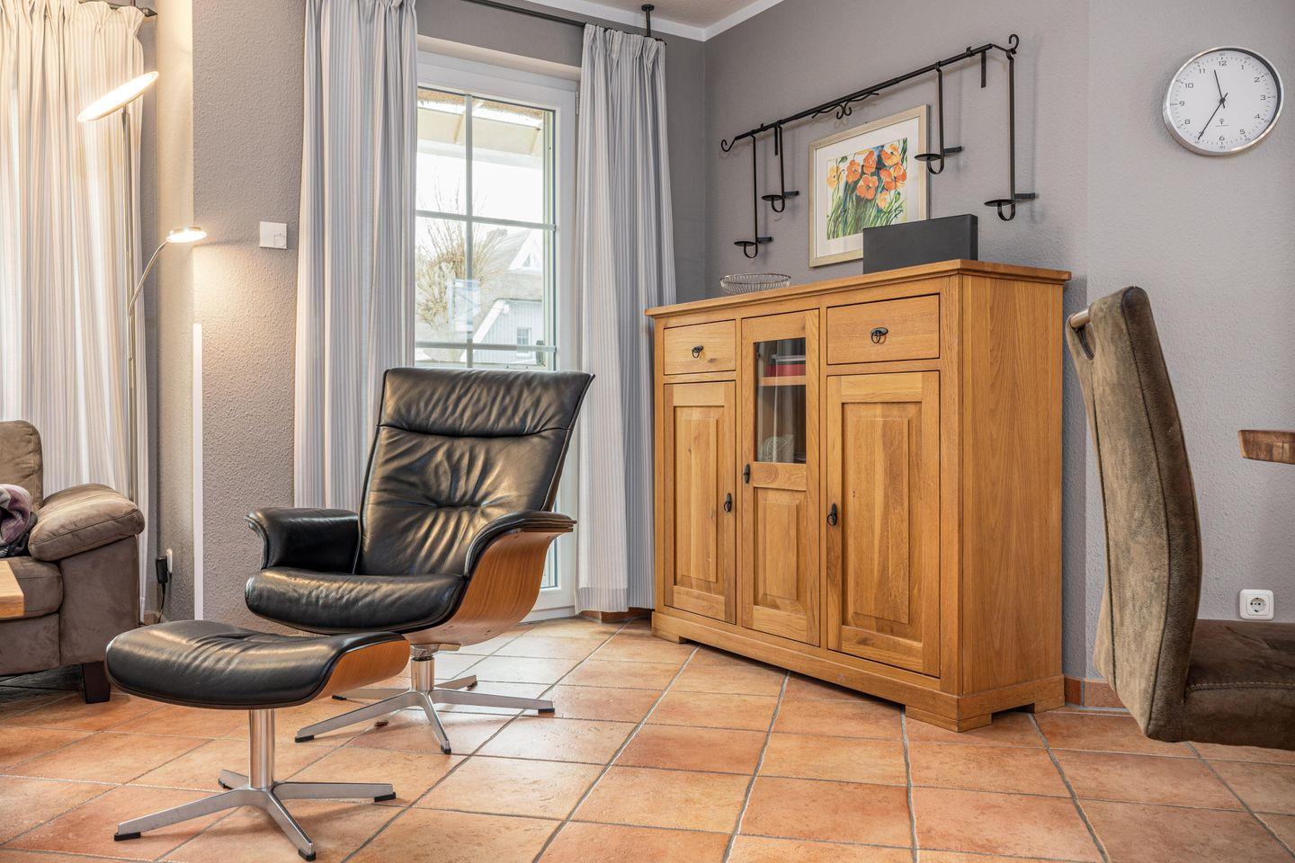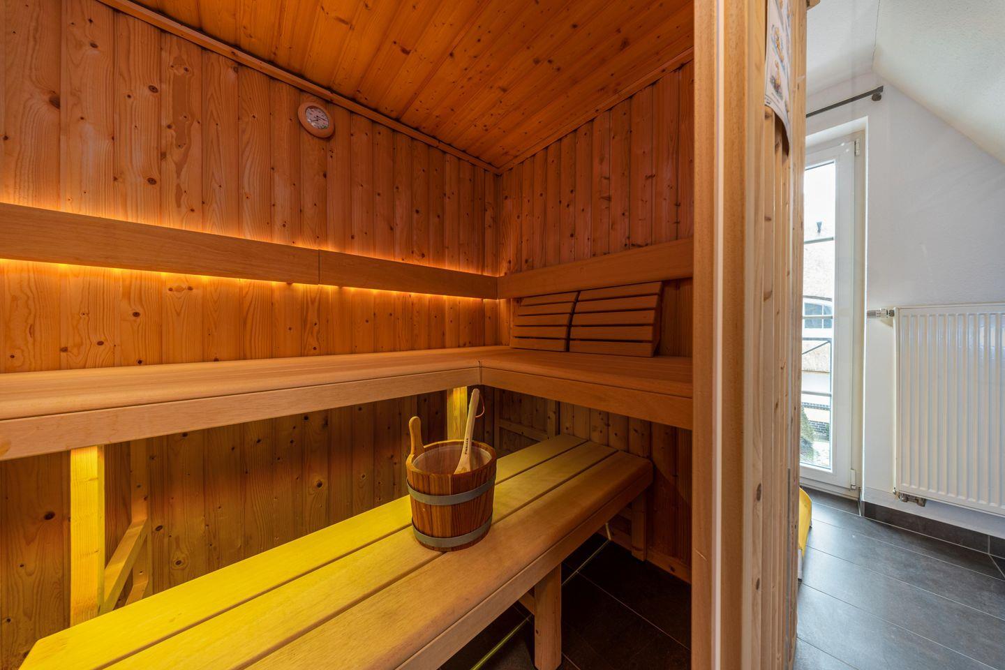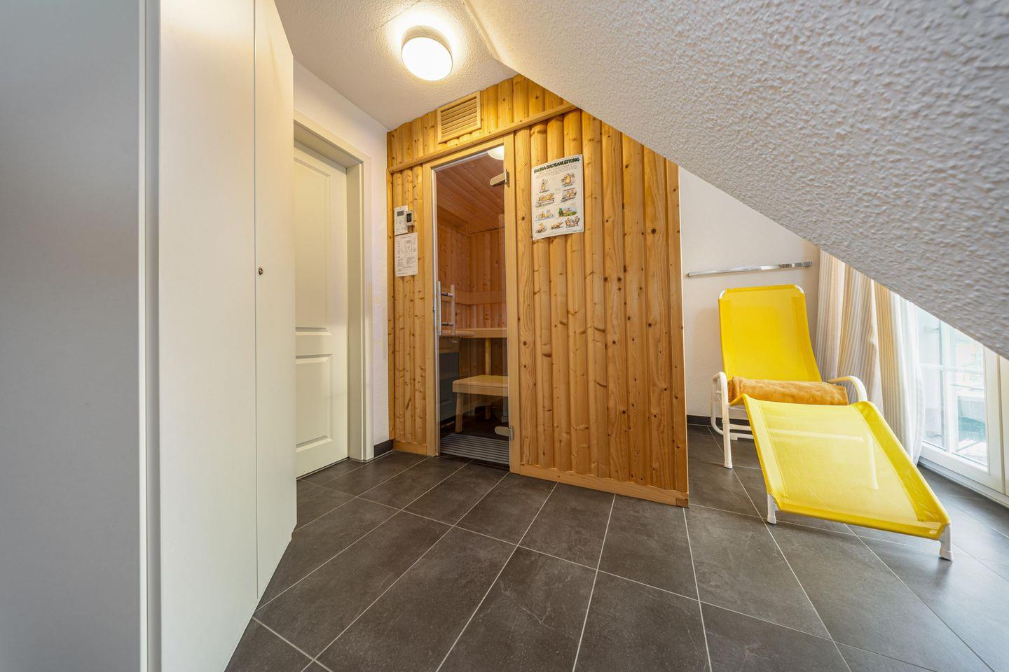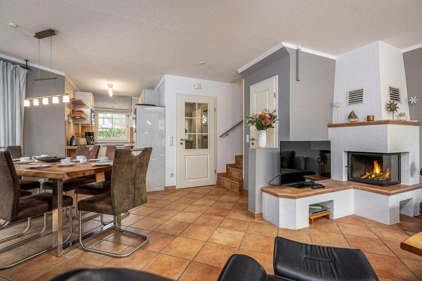 Im Erdgeschoss ist der Wohnbereich mit Kamin, integrierter Küche, Essecke und Zugang zur Terrasse und dem Garten. Beide Schlafzimmer sind mit einem Fernseher ausgestattet. Zum Haus gehört ein PKW Stellplatz, ein Fahrradschuppen und eine Waschmaschine ist ebenfalls vorhanden. Genießen Sie entspannte Stunden in der eigenen Sauna oder entspannen Sie im Garten. Das Haus Mine Heimat Weg Een ist der ideale Ort für einen erholsamen Urlaub in Zingst.