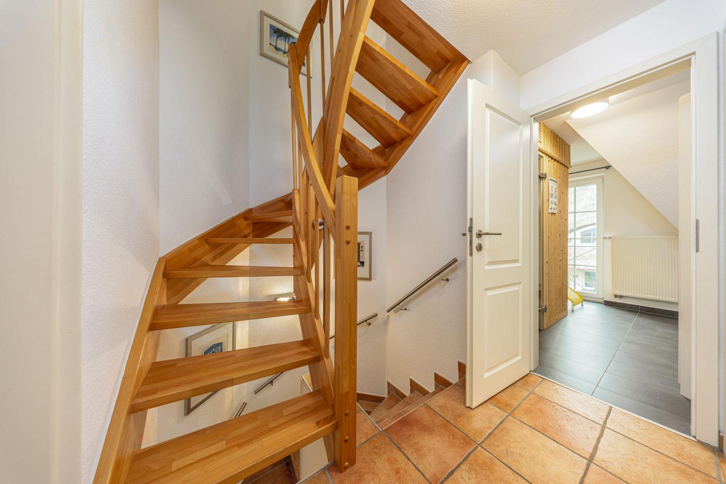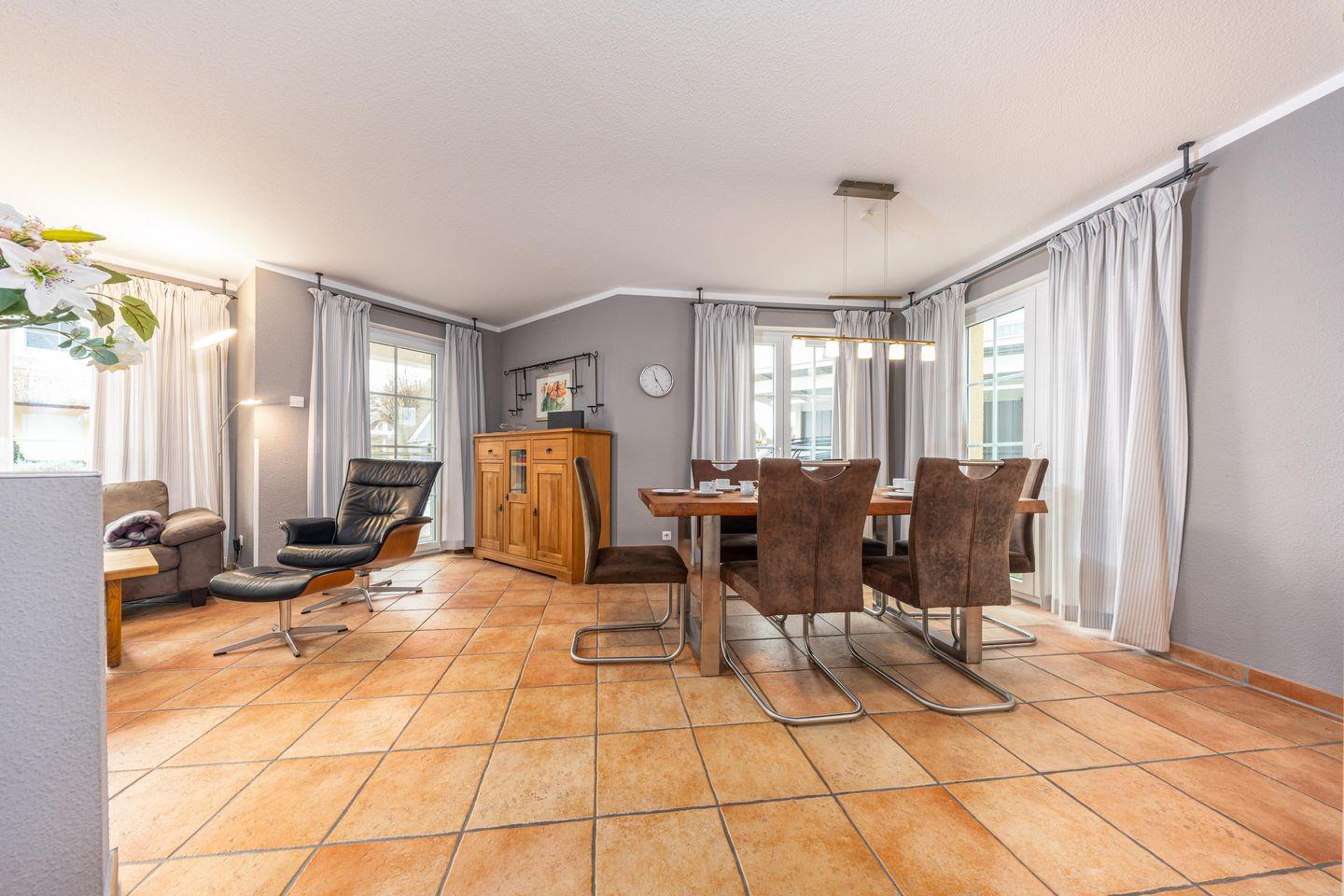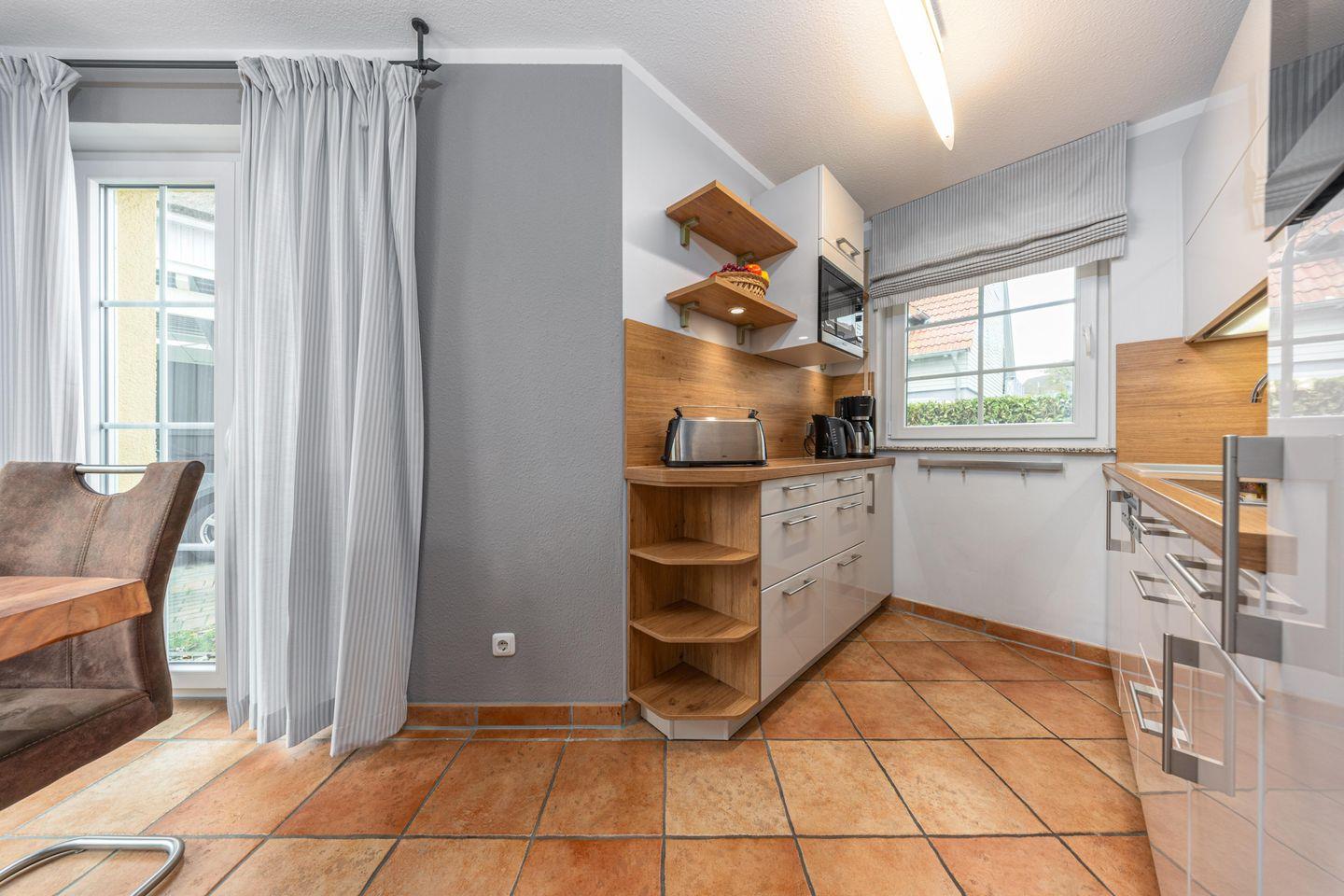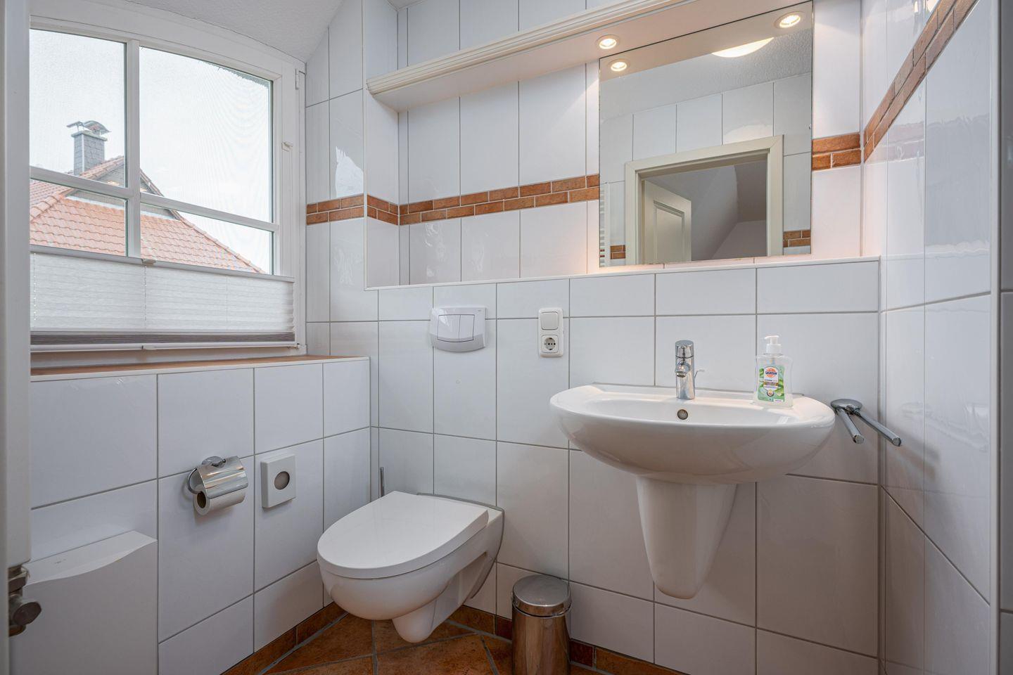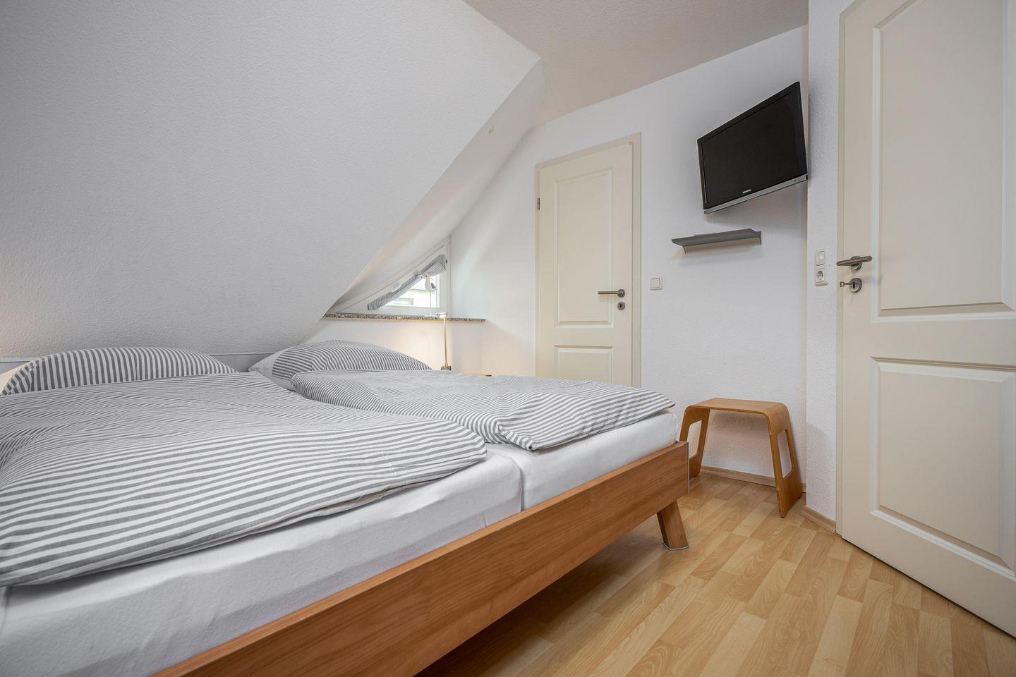 Im Erdgeschoss ist der Wohnbereich mit Kamin, integrierter Küche, Essecke und Zugang zur Terrasse und dem Garten. Beide Schlafzimmer sind mit einem Fernseher ausgestattet. Zum Haus gehört ein PKW Stellplatz, ein Fahrradschuppen und eine Waschmaschine ist ebenfalls vorhanden. Genießen Sie entspannte Stunden in der eigenen Sauna oder entspannen Sie im Garten. Das Haus Mine Heimat Weg Een ist der ideale Ort für einen erholsamen Urlaub in Zingst.
