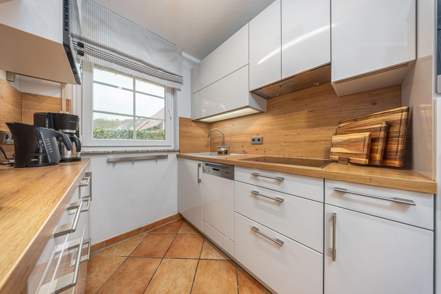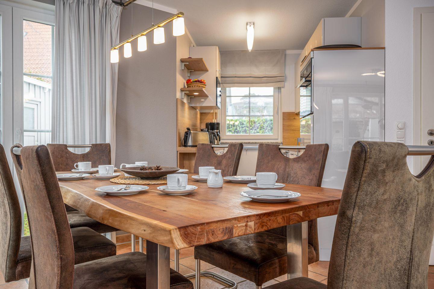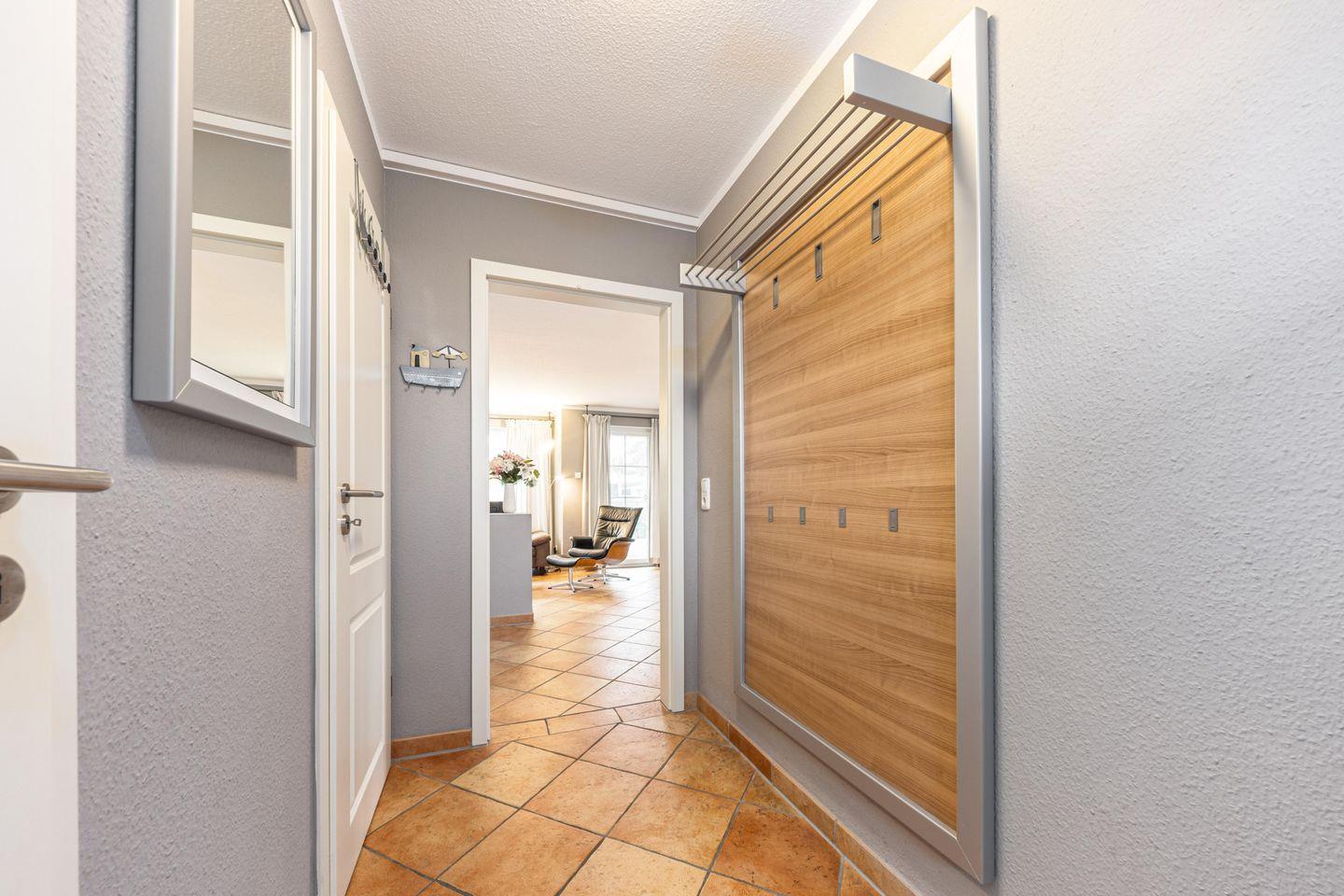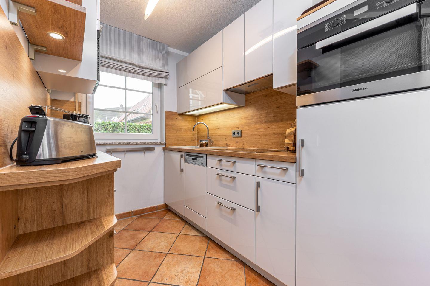 Im Erdgeschoss ist der Wohnbereich mit Kamin, integrierter Küche, Essecke und Zugang zur Terrasse und dem Garten. Beide Schlafzimmer sind mit einem Fernseher ausgestattet. Zum Haus gehört ein PKW Stellplatz, ein Fahrradschuppen und eine Waschmaschine ist ebenfalls vorhanden. Genießen Sie entspannte Stunden in der eigenen Sauna oder entspannen Sie im Garten. Das Haus Mine Heimat Weg Een ist der ideale Ort für einen erholsamen Urlaub in Zingst.