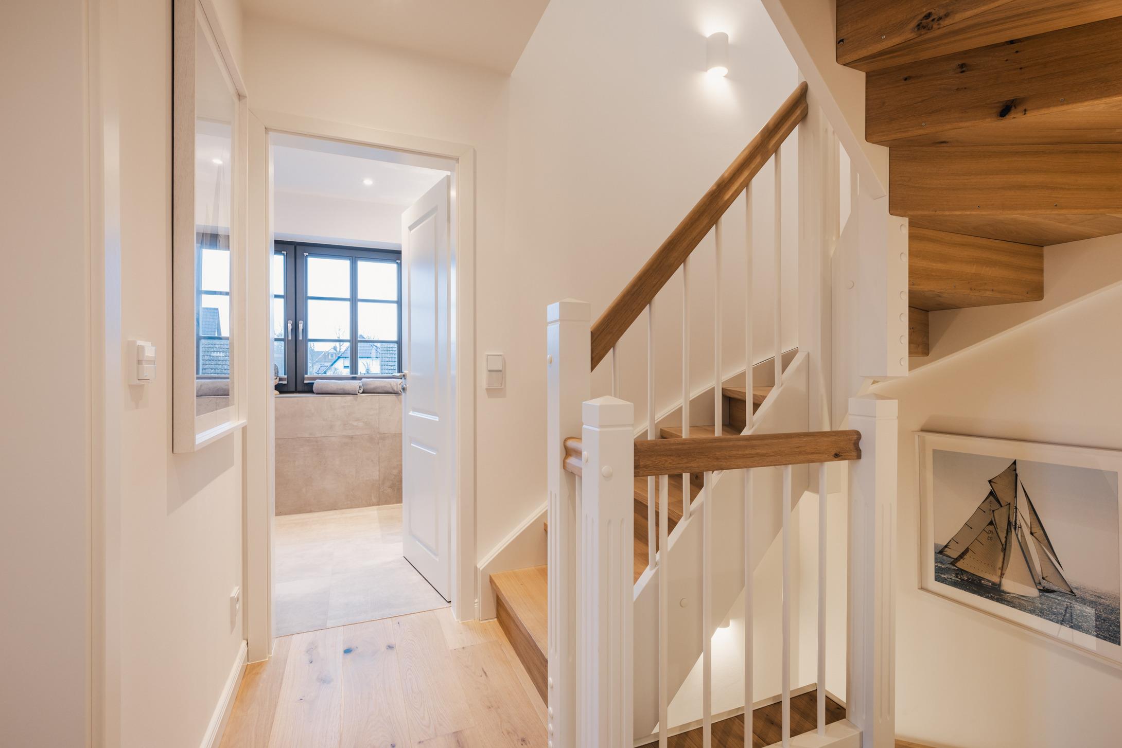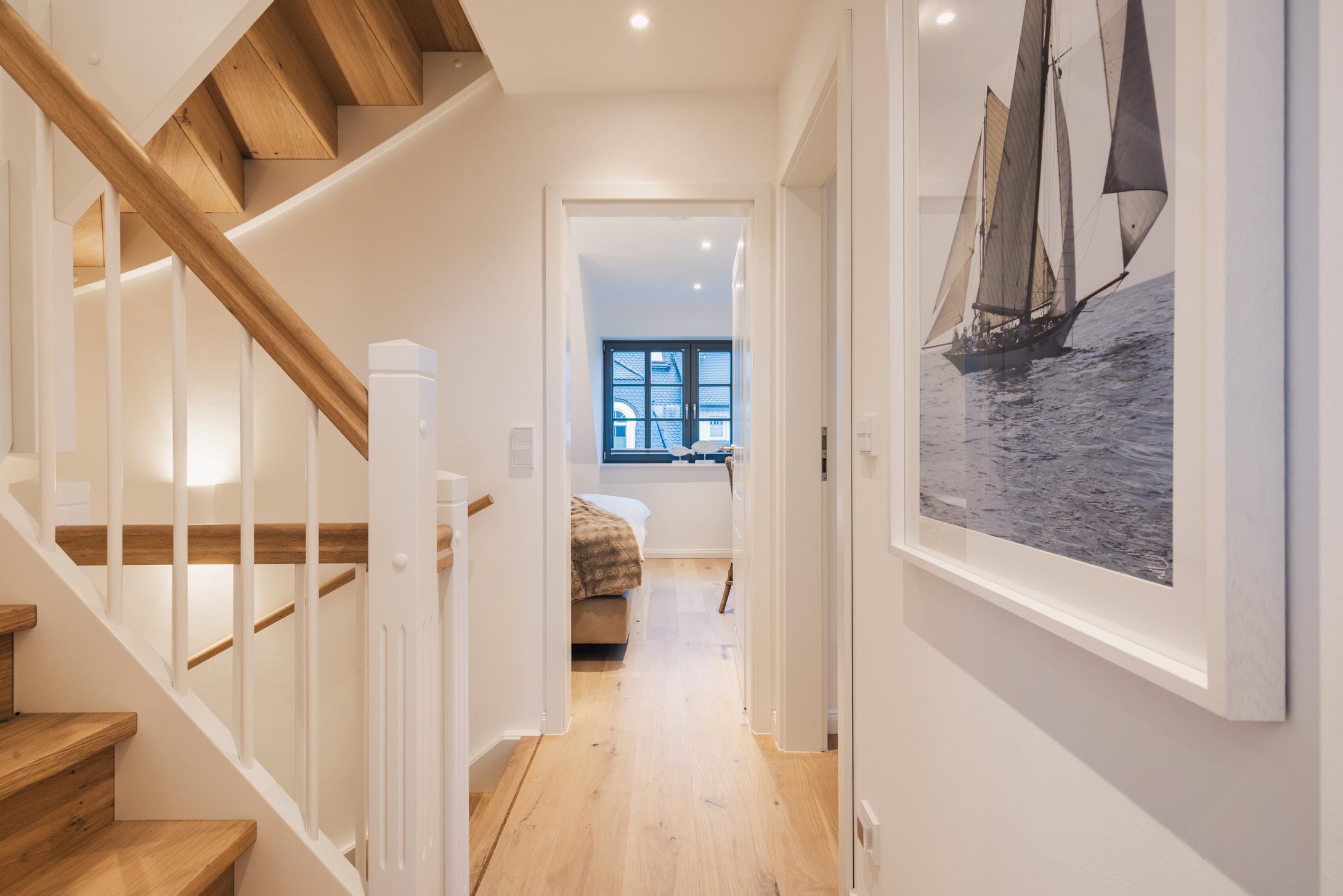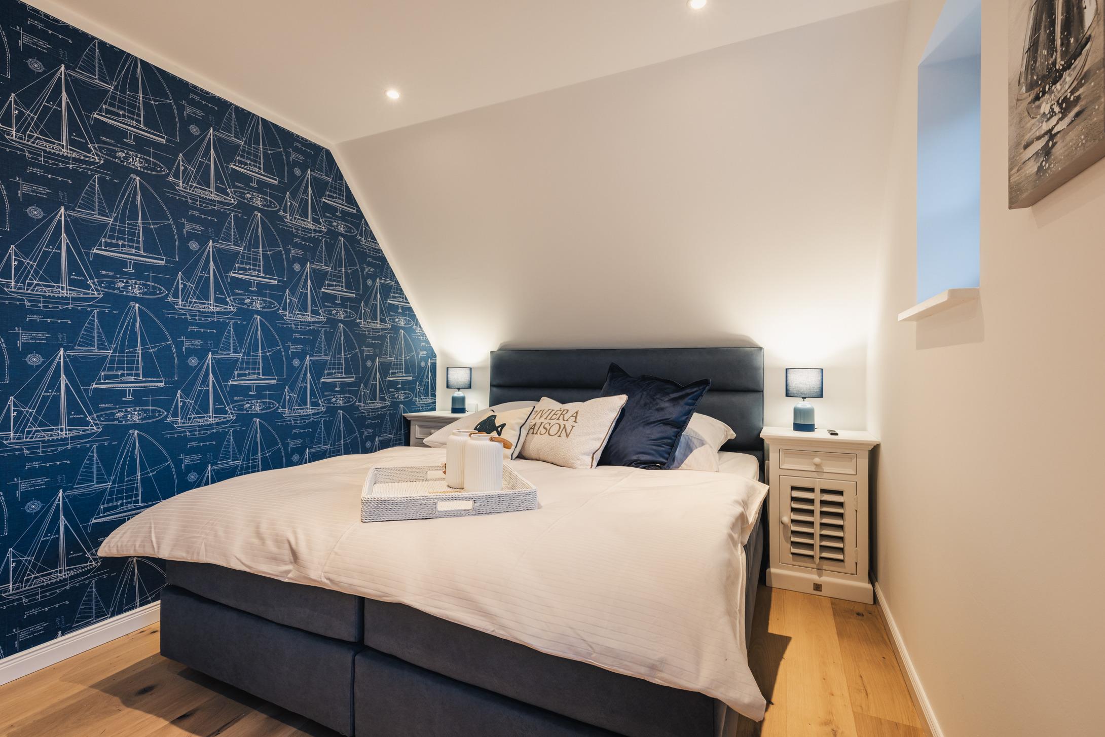 Die drei Schlafzimmer sind mit zwei bequemen Boxspringbetten und zwei Einzelbetten eingerichtet. Verdunkelnde Plissees sorgen für erholsame Nächte, und alle Schlafzimmer bieten ausreichend Stauraum für Ihr Gepäck.Hinweis: Die Betten sind bei Ihrer Anreise stets frisch bezogen. Bitte beachten Sie, dass grundsätzlich immer nur so viele Betten bezogen werden, wie Personen anreisen. Da das Haus über zwei Doppelbetten und zwei Einzelbetten verfügt, werden bei einer Buchung von vier Personen standardmäßig die beiden Doppelbetten vorbereitet, gleiches gilt auch bei zwei Personen, da wird nur ein Doppelbett bezogen. Wir gehen davon aus, dass gemeinsam reisende Personen ein Doppelbett teilen. Sollten Sie eine andere Schlafaufteilung wünschen, teilen Sie uns dies bitte vor Ihrer Anreise mit, damit wir die Betten entsprechend vorbereiten können. Eine Einsicht in das persönliche Verhältnis der Reisenden besteht selbstverständlich nicht.