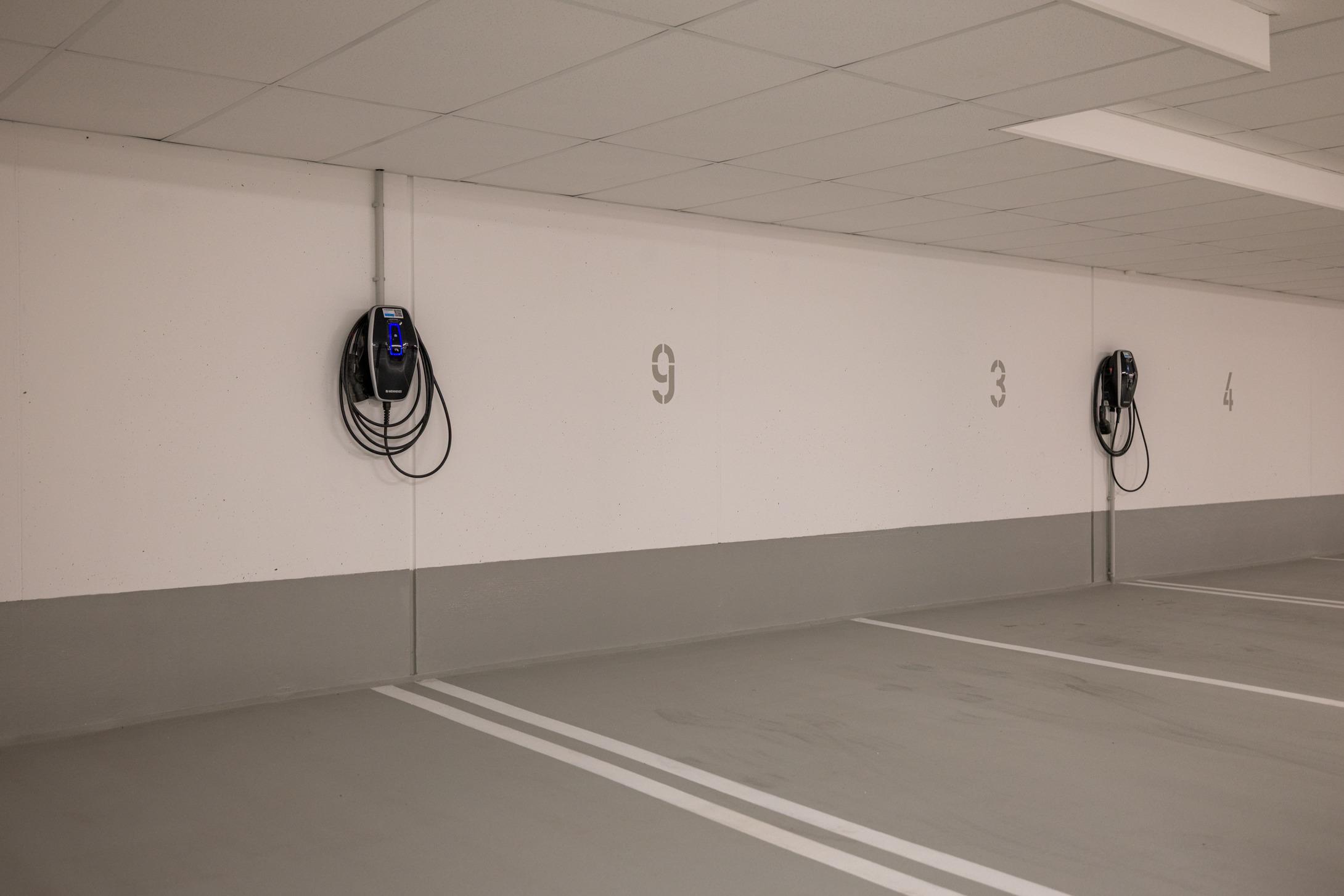 Einen privaten Tiefgaragen-Stellplatz mit Ladefunktion, bequem erreichbar über einen Autoaufzug