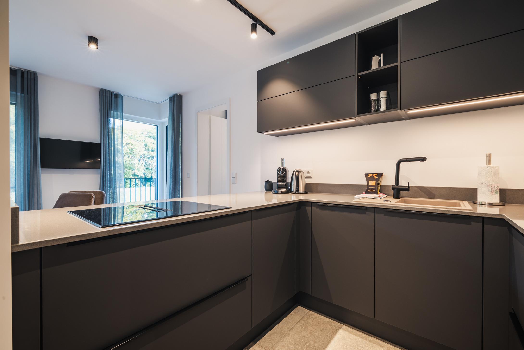 Voll ausgestattete Küche mit hochwertigen Geräten für kulinarische Entfaltung