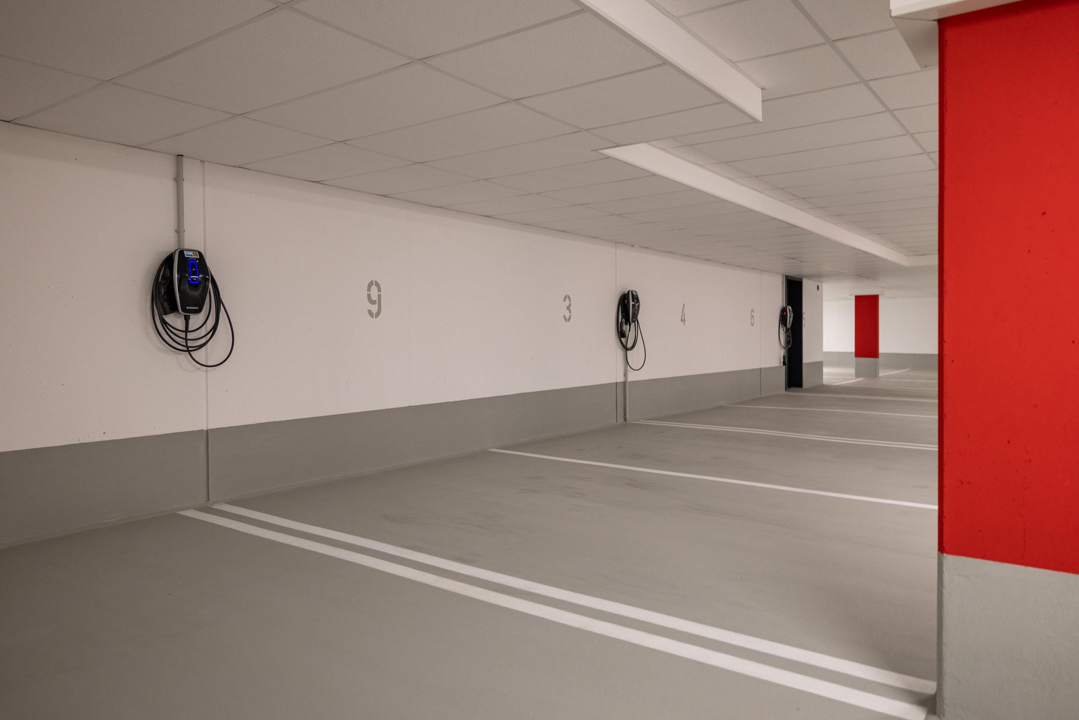 Privater Tiefgaragenstellplatz mit Ladefunktion, bequem erreichbar über Autoaufzug