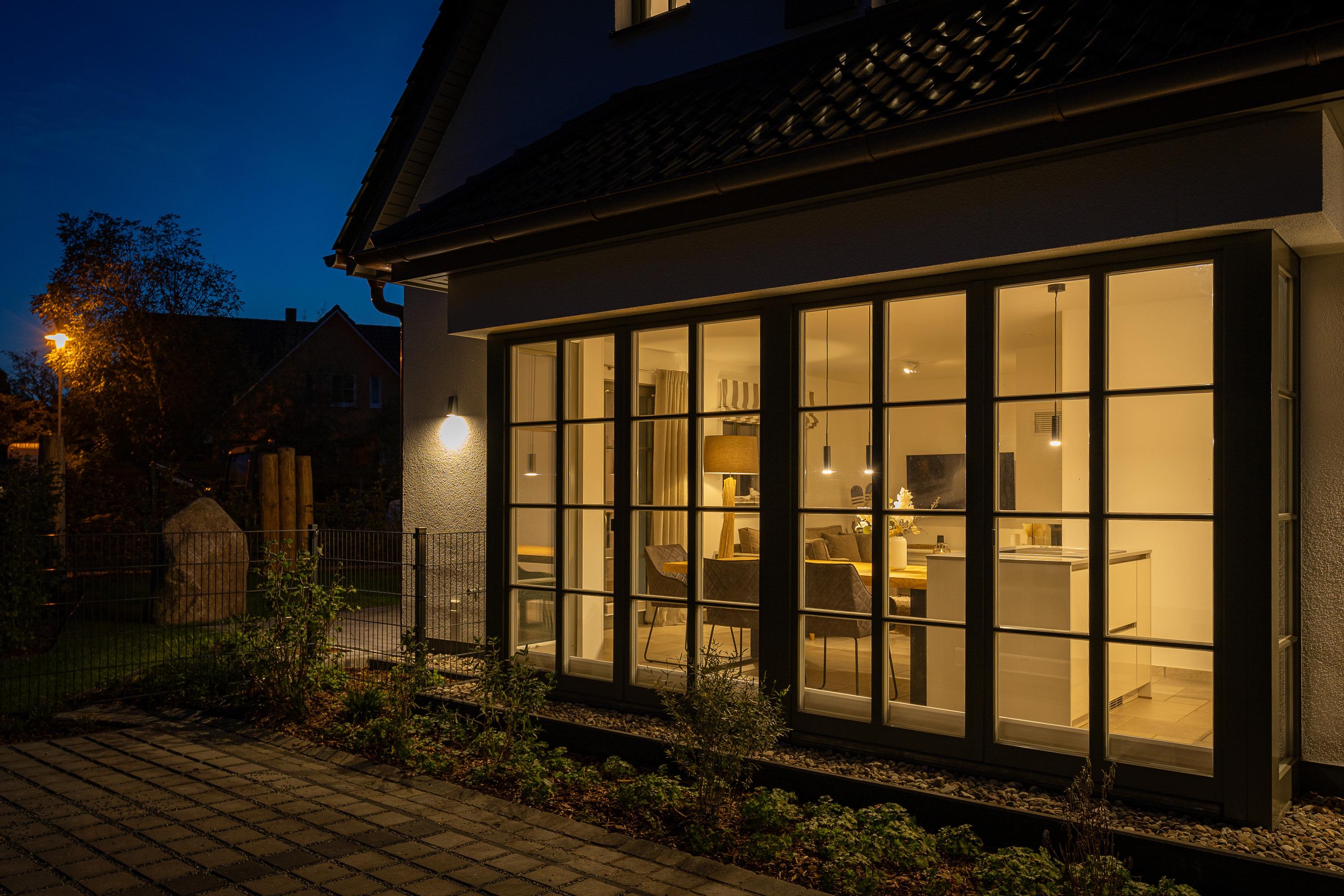Das Ferienhaus besticht durch seine charmante und einladende Einrichtung. Dies verfügt über eine moderne Wohnküche mit Markengeräten, in der Sie gemeinsame Mahlzeiten zubereiten können. Der angrenzende Essbereich bietet Platz für die ganze Familie und ist der perfekte Ort, um gemeinsam zu essen oder Spieleabende zu veranstalten. Der offene Wohnbereich ist gemütlich und hochwertig ausgestattet und Sie können die Abende am Kamin ausklingen lassen. Die großen Fenster lassen viel Sonnenlicht herein und schaffen eine angenehme Atmosphäre.