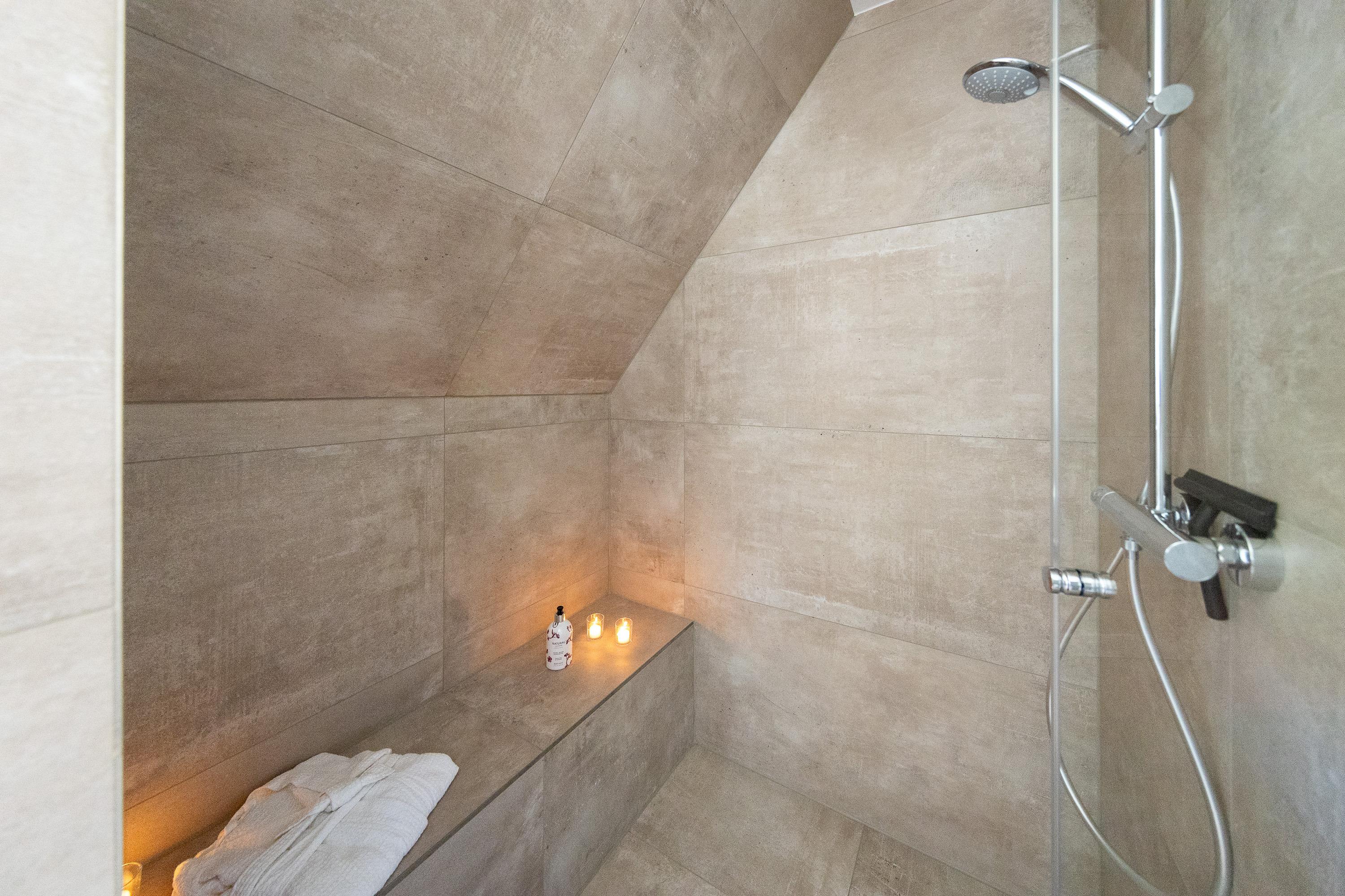Das Ferienhaus bietet zwei moderne Bäder davon eine Dusche mit Sitzbank sowie eine Sauna in der Sie sich nach einem langen Strandtag herrlich entspannen können. Hier können Sie die Wärme genießen und neue Energie tanken.