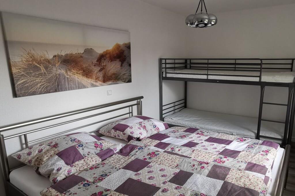 Das Appartement bietet insgesamt sechs Schlafplätze. Im Schlafzimmer befinden sich ein großes Doppelbett (180x200) und ein Etagenbett (2x 90x200). Im zweiten Schlafzimmer befindet sich ein Doppelbett (140x200). Im Wohnzimmer lädt ein schöner Kaminofen zum Ausklang eines romantischen Abends ein. Die Böden sind mit rustikalem Laminat ausgelegt. Im modernen Bad gibt es eine Badewanne zum Verwöhnen. Die Wohnung verfügt über einen eigenen Stellplatz und eine Fahrradabstellmöglichkeit. Auf der Terrasse können Sie den Abend mit dem Grill genießen. In der Villa gibt es zwei weitere Wohneinheiten mit insgesamt acht weiteren Schlafplätzen, die auch gemeinsam gebucht werden können.