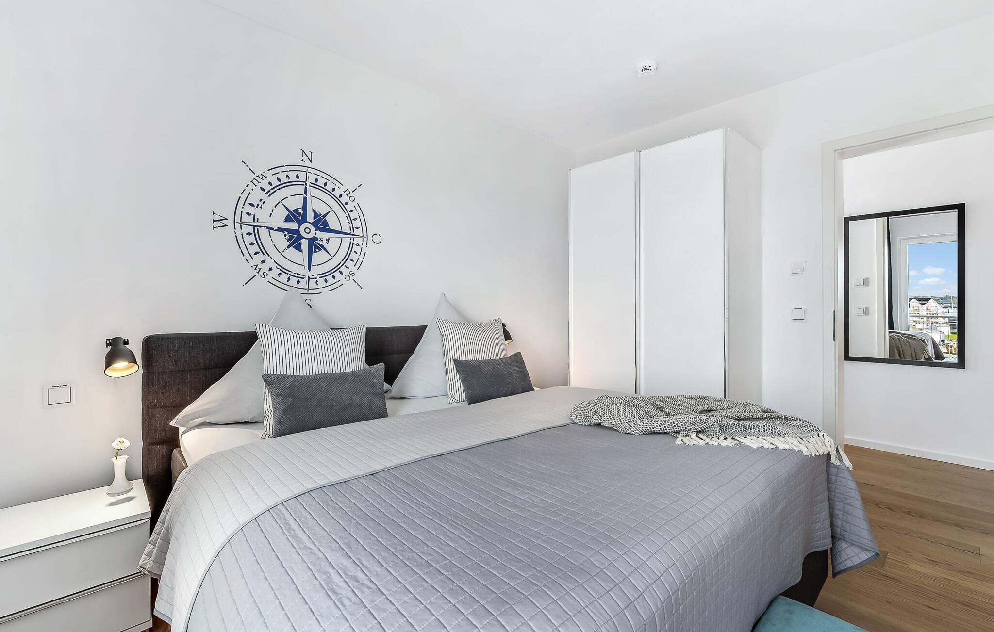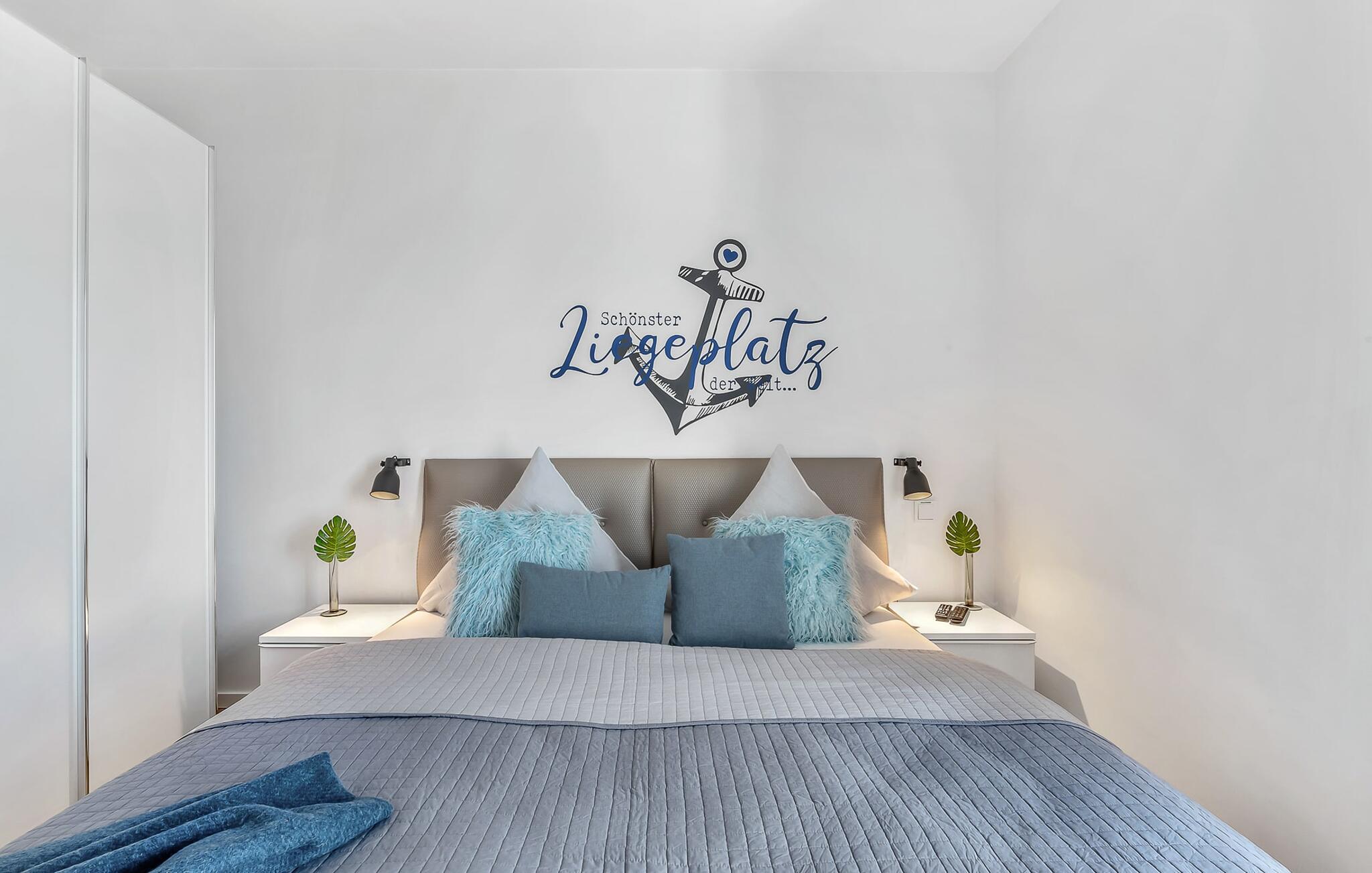 Im Hauptschlafzimmer mit Fernseher und einem Doppelbett lässt sich das Lattenrost elektrisch verstellen und garantiert somit höchsten Schlafkomfort. Das Boxpsring-Doppelbett im zweiten Schlafzimmer steht dem in nichts nach! Beide Schlafzimmer sind durch einen weiteren Balkon verbunden und bieten sich eventuell für gemeinsames Sternegucken an? Traumhafte Abendsonne und spektakuläre Sonnenuntergänge sind hier garantiert.
