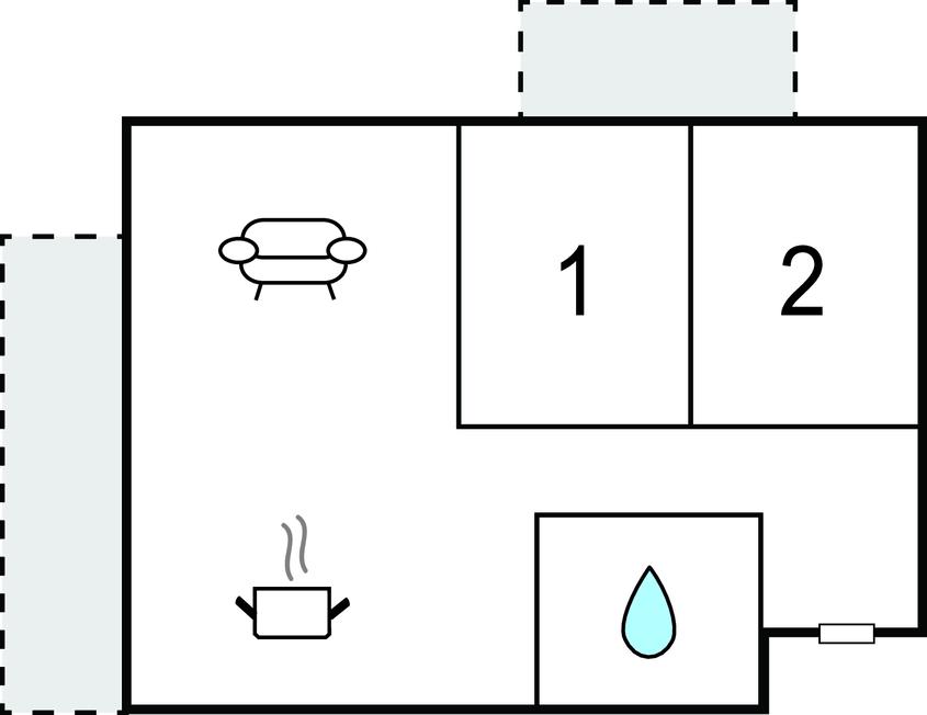 Eine gemütliche Sofaecke mit Fernseher und ein moderner Essplatz verbreiten Urlaubsfeeling vom ersten Augenblick an und lassen den Alltag schnell verblassen. Dazu tragen ohne Frage der Relax-Sessel und der Kaminofen mit bei. Die Sofaecke lässt sich mit wenigen Handgriffen in einen weiteren Schlafplatz für Kinder mit einer Schlaffläche von 80x190cm umfunktionieren.