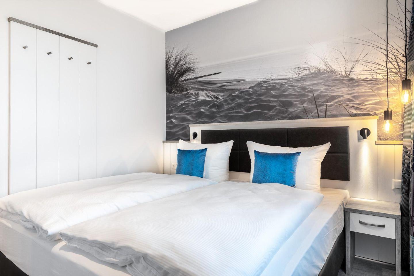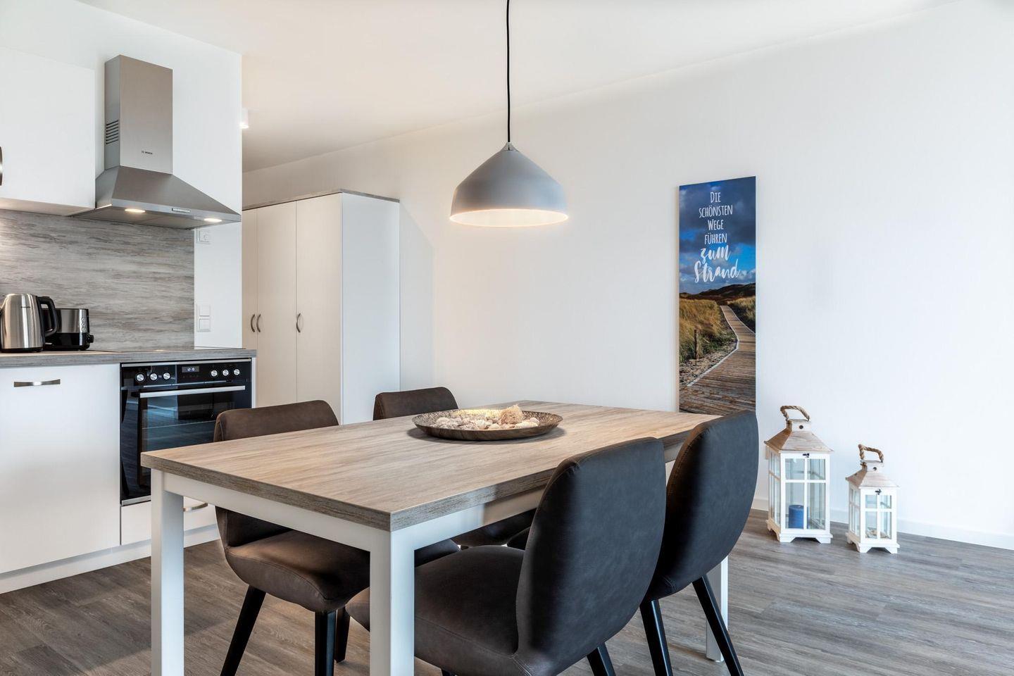 Modernes Apartment mit Balkon und Sauna, nur 25 m vom feinsandigen Südstrand entfernt.