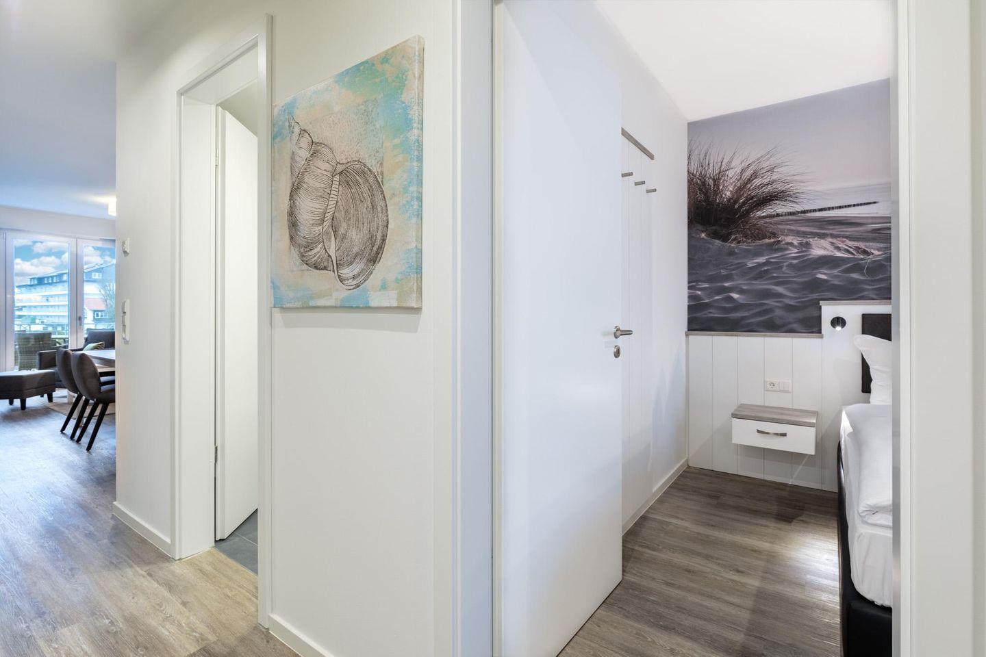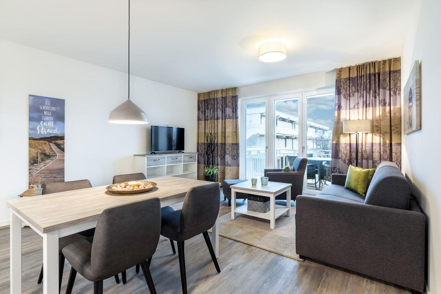 Das 54 m² große 2-Zimmer Apartment ist für bis zu 4 Personen geeignet. Besonders hervorzuheben ist der sonnige und überdachte Balkon in West-Lage; hier genießt ihr das wohltuende Meeresklima.