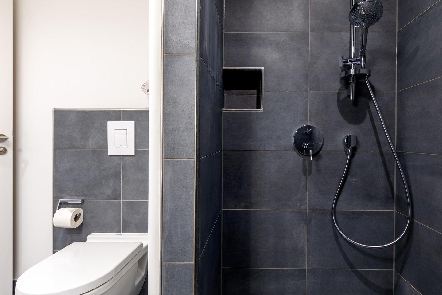 Das separate Schlafzimmer bietet hohen Schlafkomfort durch zwei moderne Boxspringbetten (0,90 x 2,00 m) und ist mit einem weiteren Flatscreen-TV (40 Zoll) sowie Kleiderschrank und Sitz-/Kofferbank ausgestattet. Das stilvolle Badezimmer verfügt über eine ebenerdige Regendusche, WC, Waschtisch mit Föhn sowie Kosmetikspiegel, Handtuchheizkörper und Fußbodenheizung.