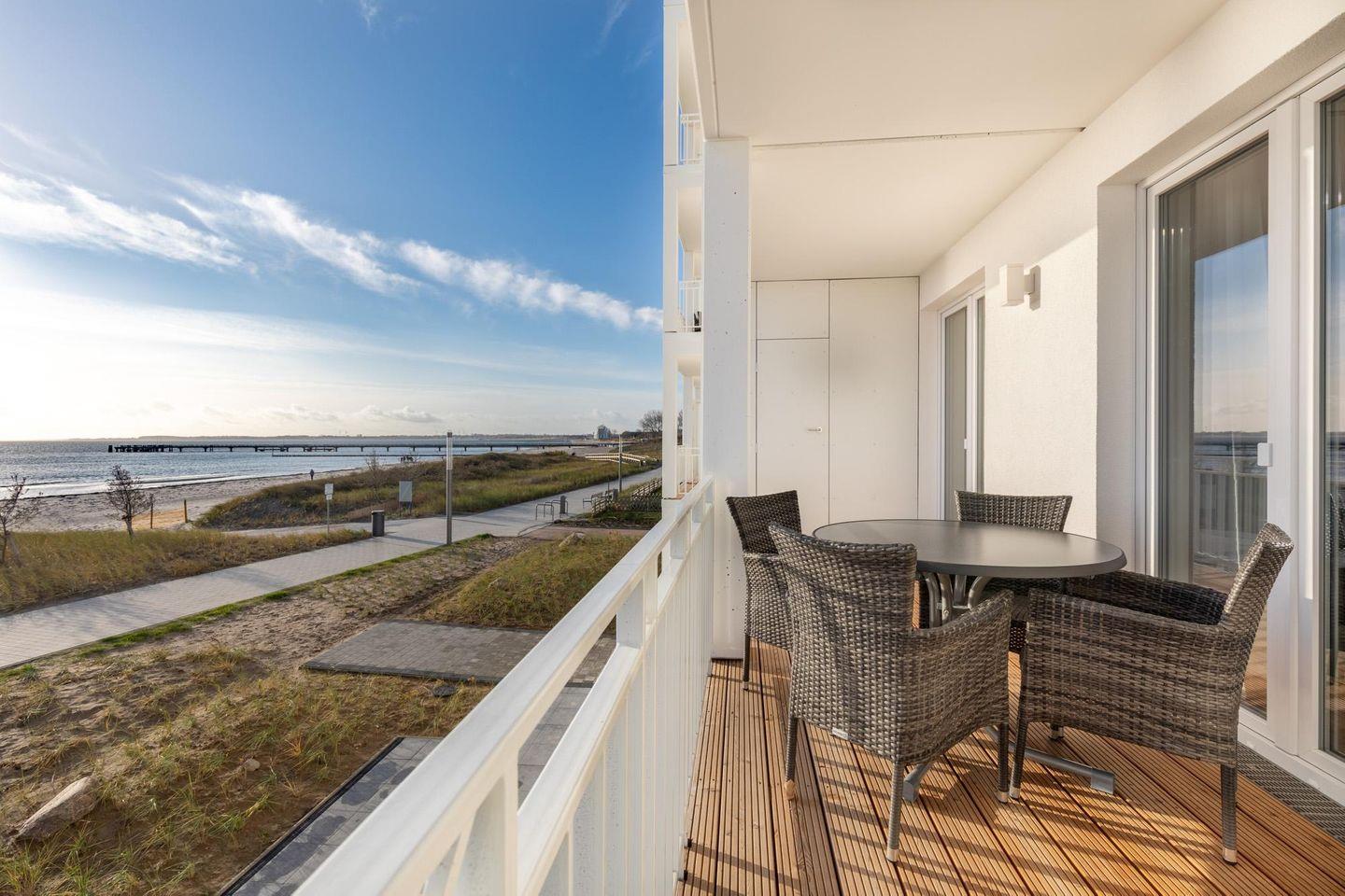 Modernes Ferienapartment mit Meerblick, direkter Strandlage und Balkon in Großenbrode.