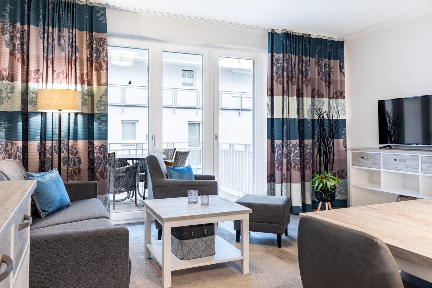 Das lichtdurchflutete und familienfreundliche Nichtraucher-Apartment ist barrierearm und verfügt über Fußbodenheizung, sonnenschutzverglaste und bodentiefe Fensterflächen, kostenfreies WLAN und eine voll ausgestattete offene Küche mit Geschirrspüler, Kühlschrank und Gefrierfach, Kaffeemaschine, Toaster, Wasserkocher, Herd mit Glaskeramikkochfeld und Backofen.