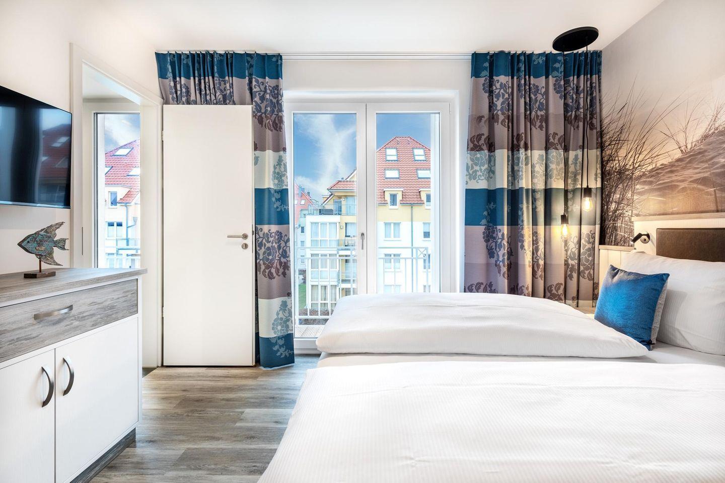 Das 55 m² große 2-Zimmer Apartment ist für bis zu 4 Personen geeignet. Besonders hervorzuheben ist der sonnige und überdachte Balkon in Süd-West-Lage; hier genießt ihr das wohltuende Meeresklima. Durch einen über die nordwestliche Seite verlaufenden Austritt - ähnlich einem französischen Balkon - ist das Apartment besonders lichtdurchflutet.