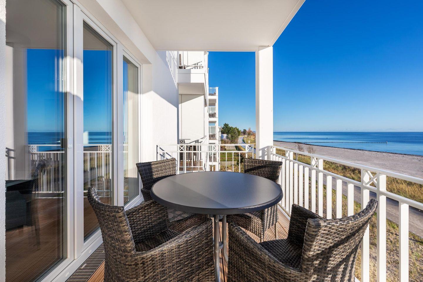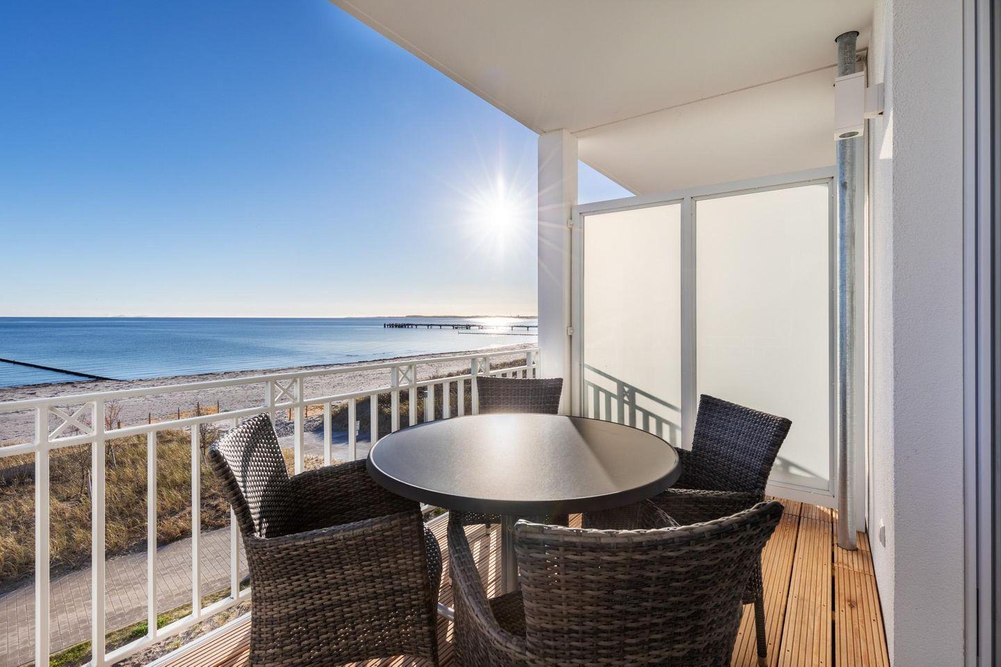 Modernes Apartment direkt am Ostseestrand mit traumhaftem Meerblick und Balkon in Süd-Ost-Lage.