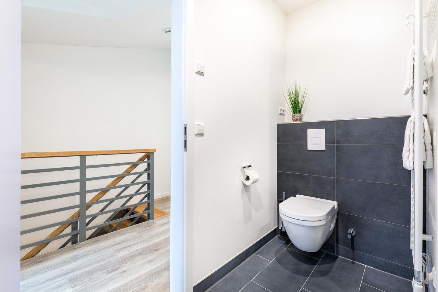 Über die Treppe im Entree gelangt ihr auf die zweite Wohnebene im Dachgeschoss. Hier befindet sich ein zweites Bad mit ebenerdiger Regendusche, WC, Waschtisch mit Föhn, Handtuchheizkörper und Fußbodenheizung. Zwei weitere separate Schlafbereiche mit jeweils zwei modernen Boxspringbetten (0,90 x 2,00 m) bieten euch Platz für die ganze Familie. Das nach Südwesten ausgerichtete und größere der beiden Schlafzimmer verfügt über einen Flatscreen-TV (40 Zoll), Kleiderschrank und Sitz-/Kofferbank sowie über eine Couch und einen Tisch. Das kleinere der beiden Schlafzimmer mit zwei modernen Boxspringbetten (2 x 0,80 x 2,00 m) verfügt ebenfalls über einen Flatscreen-TV (32 Zoll).