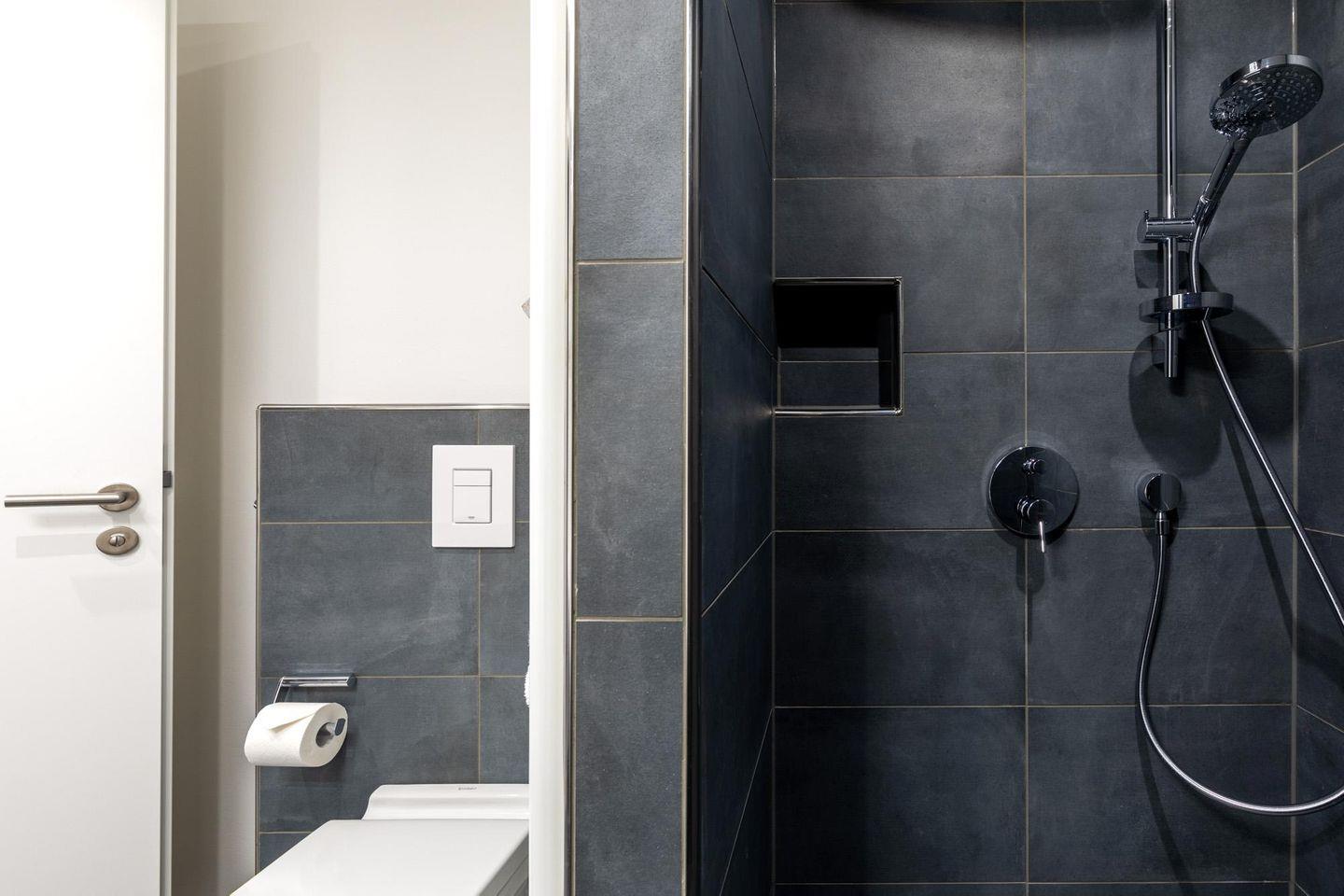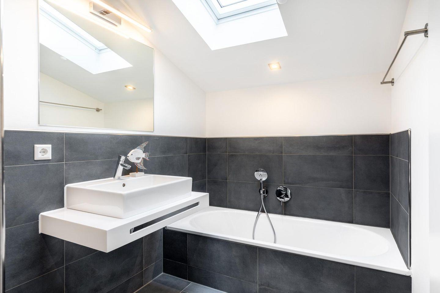 Das stilvolle Badezimmer auf dieser Wohnebene verfügt über eine ebenerdige Regendusche, WC, Waschtisch mit Föhn, Handtuchheizkörper und Fußbodenheizung. Entspannte und sonnige Stunden mit wundervollem Panoramablick auf die Ostsee verbringt ihr auf dem überdachten und mit Gartenmöbeln ausgestatteten Balkon in Süd-West-Lage. Der Balkon ist vom Wohnbereich aus zugänglich.