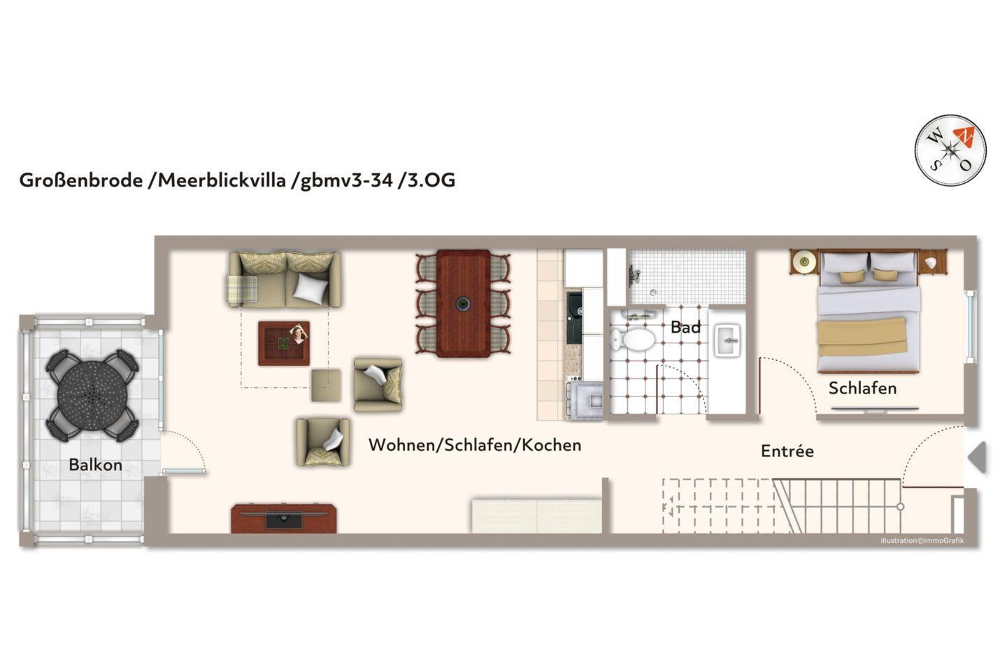 Das exklusive Penthaus befindet sich in südwestlicher Lage und verläuft über das dritte Obergeschoss und über das Dachgeschoss der Apartmentanlage Meerblickvilla. Die Ostsee liegt direkt vor eurer Haustür - in nur 25 Metern befindet sich der feinsandige, wunderschöne Südstrand mit seiner Strandpromenade, der Seemole und der 230 Meter langen Seebrücke. Genießt einen traumhaften Blick auf die Ostsee und das bunte Strandleben.