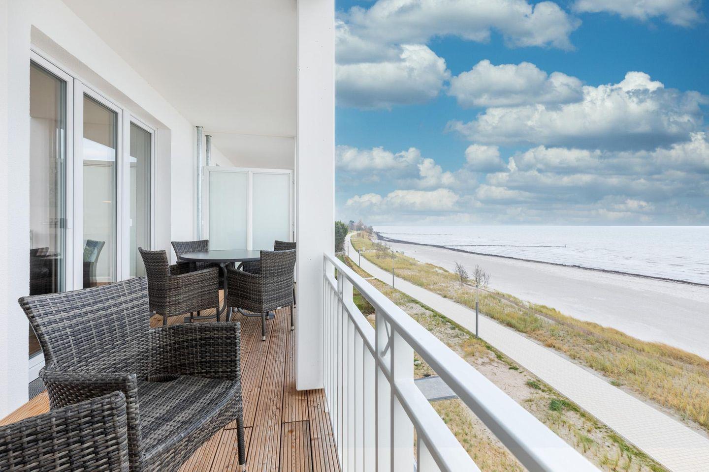 Genießen Sie ein exklusives Apartment mit Balkon und direktem Meerblick am feinsandigen Südstrand in Großenbrode.