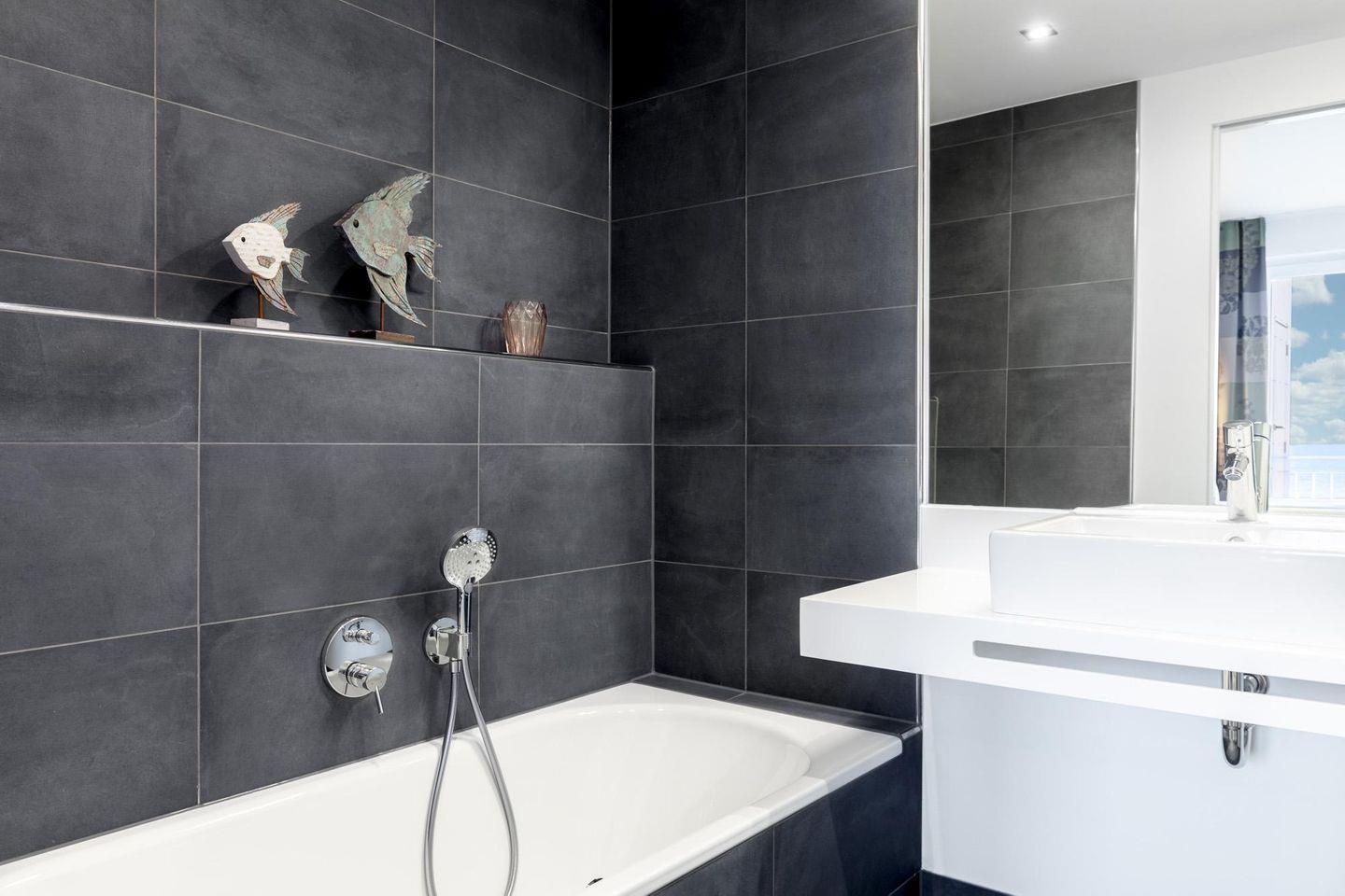 Im modern-behaglichen Wohn-Essbereich befindet sich ein großer Flatscreen-TV (43 Zoll) sowie eine hochwertige Mini-Musikanlage mit CD-Player, DAB+ und UKW-Radio, USB und Bluetooth. Zusätzlich steht eine Auswahl an Kinderbüchern, Kinderspielen und Puzzles für die kleinen Gäste bereit. Beide separaten Schlafzimmer bieten hohen Schlafkomfort durch jeweils zwei moderne Boxspringbetten (0,90 x 2,00 m) und sind mit jeweils einem Flatscreen-TV (40 Zoll) und Kleiderschrank ausgestattet. Zwei stilvolle Badezimmer bieten eine ebenerdige Regendusche bzw. eine Badewanne, WC, Waschtisch mit Föhn, Kosmetikspiegel, Handtuchheizkörper und Fußbodenheizung. So beginnt ihr euren Urlaubstag schon morgens ganz entspannt.