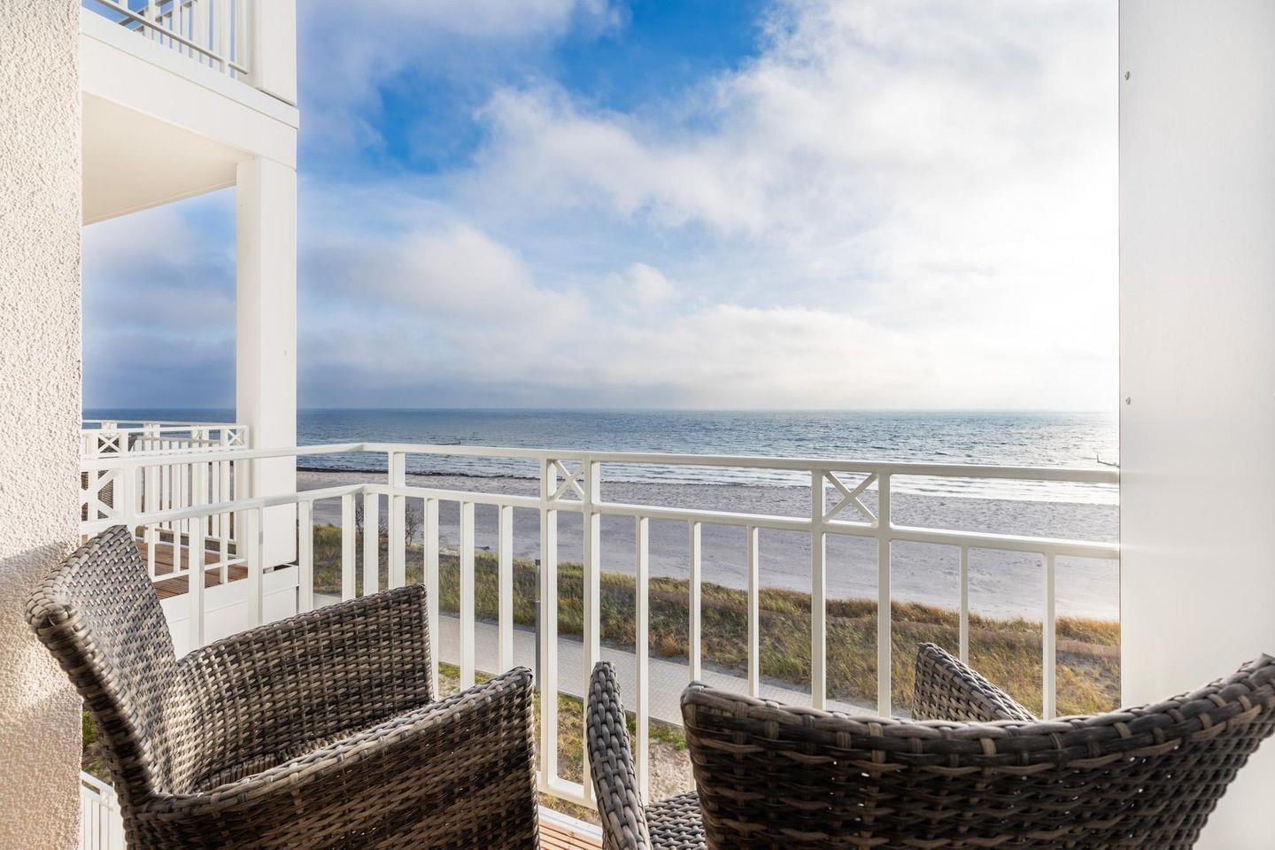 Entspannte und sonnige Stunden mit Panoramablick auf die See verbringt ihr auf dem mit Gartenmöbeln ausgestatteten Balkon in Süd-Ost-Lage. Der Balkon ist vom Wohnbereich aus begehbar.