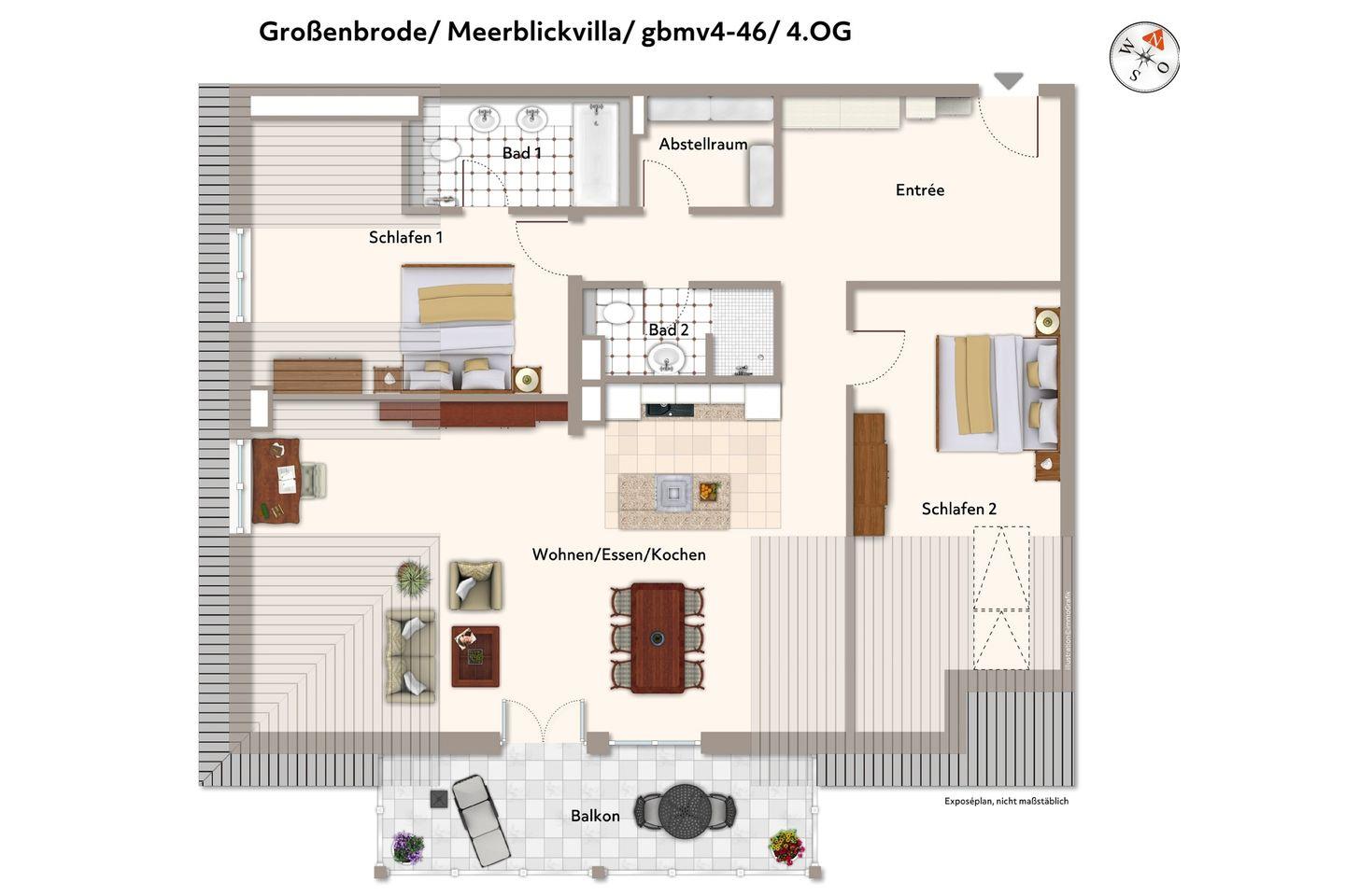 Das 122 m² große und luxuriöse 3-Zimmer Penthouse mit Meerblick ist für bis zu 6 Personen geeignet. Besonders hervorzuheben ist die großzügige Raumkonzeption und der sonnige Balkon in Süd-West-Lage; hier genießt ihr einen fantastischen Blick auf die Ostsee und das Strandleben!