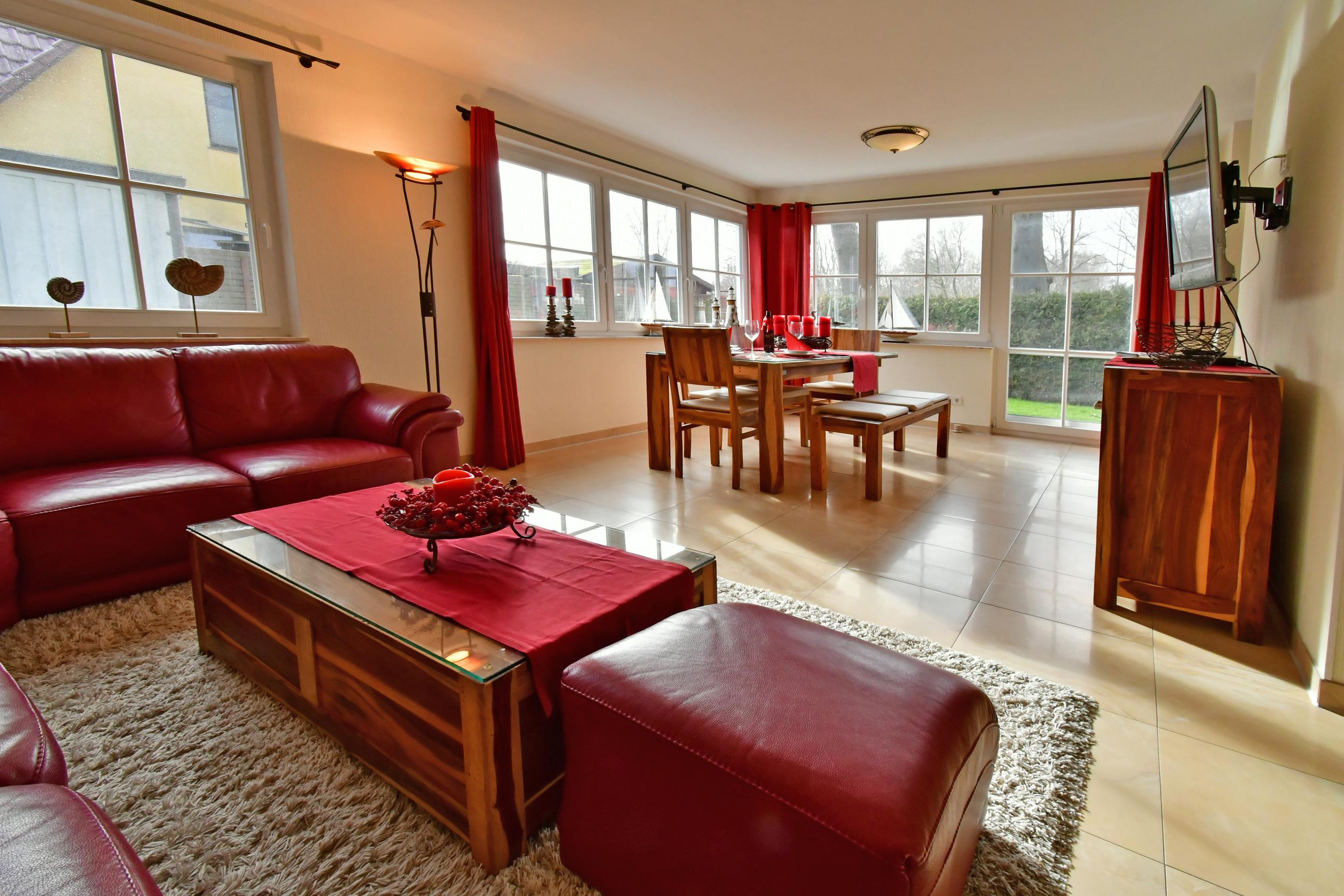Auf 105 m² Wohnfläche bietet Ihnen das Haus Sonnenschein ein großzügiges und lichtdurchflutetes Wohnzimmer mit separatem Essbereich
