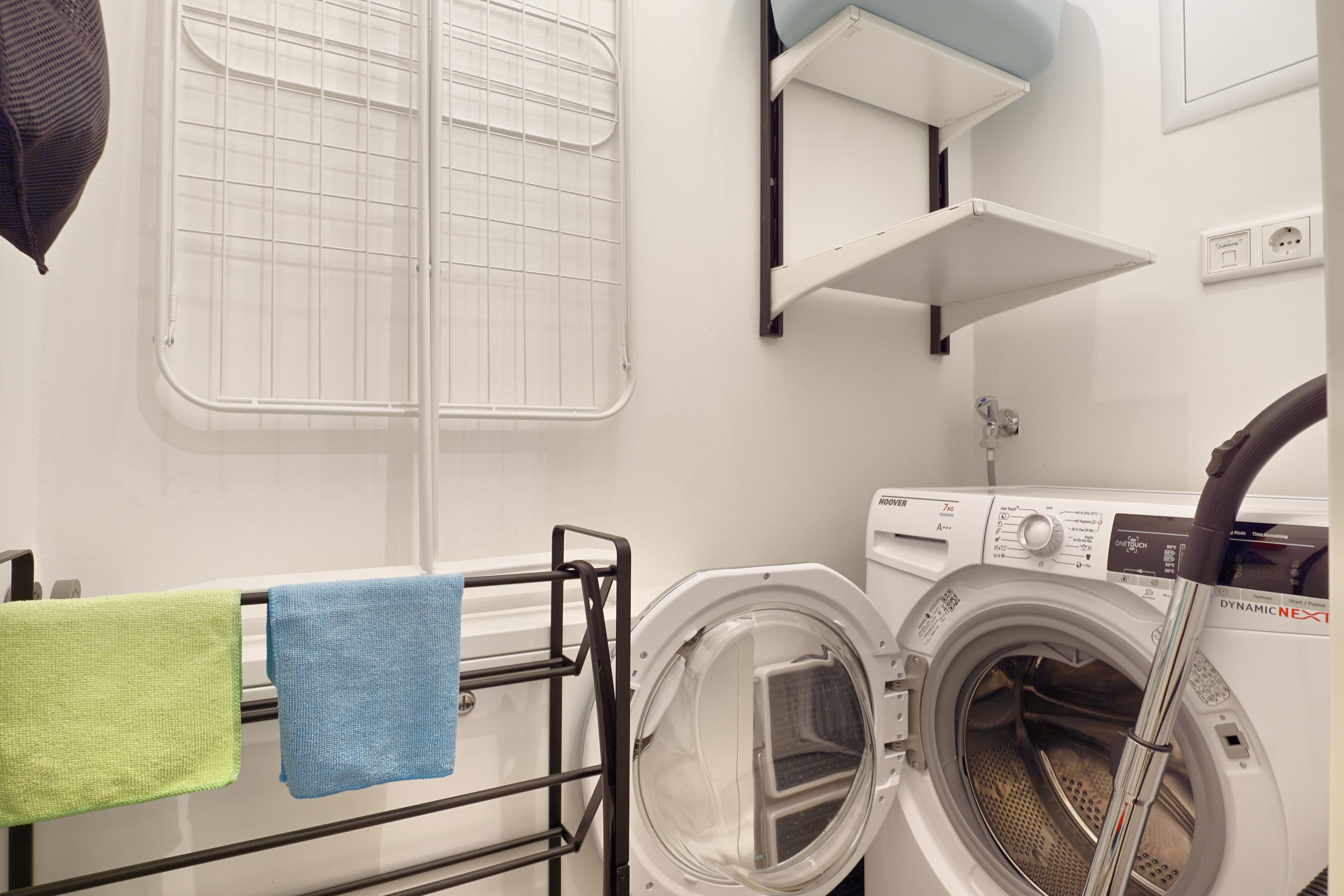 Die Wohnung ist mit einer Fußbodenheizung ausgestattet und auch an eine Waschmaschine wurde gedacht.