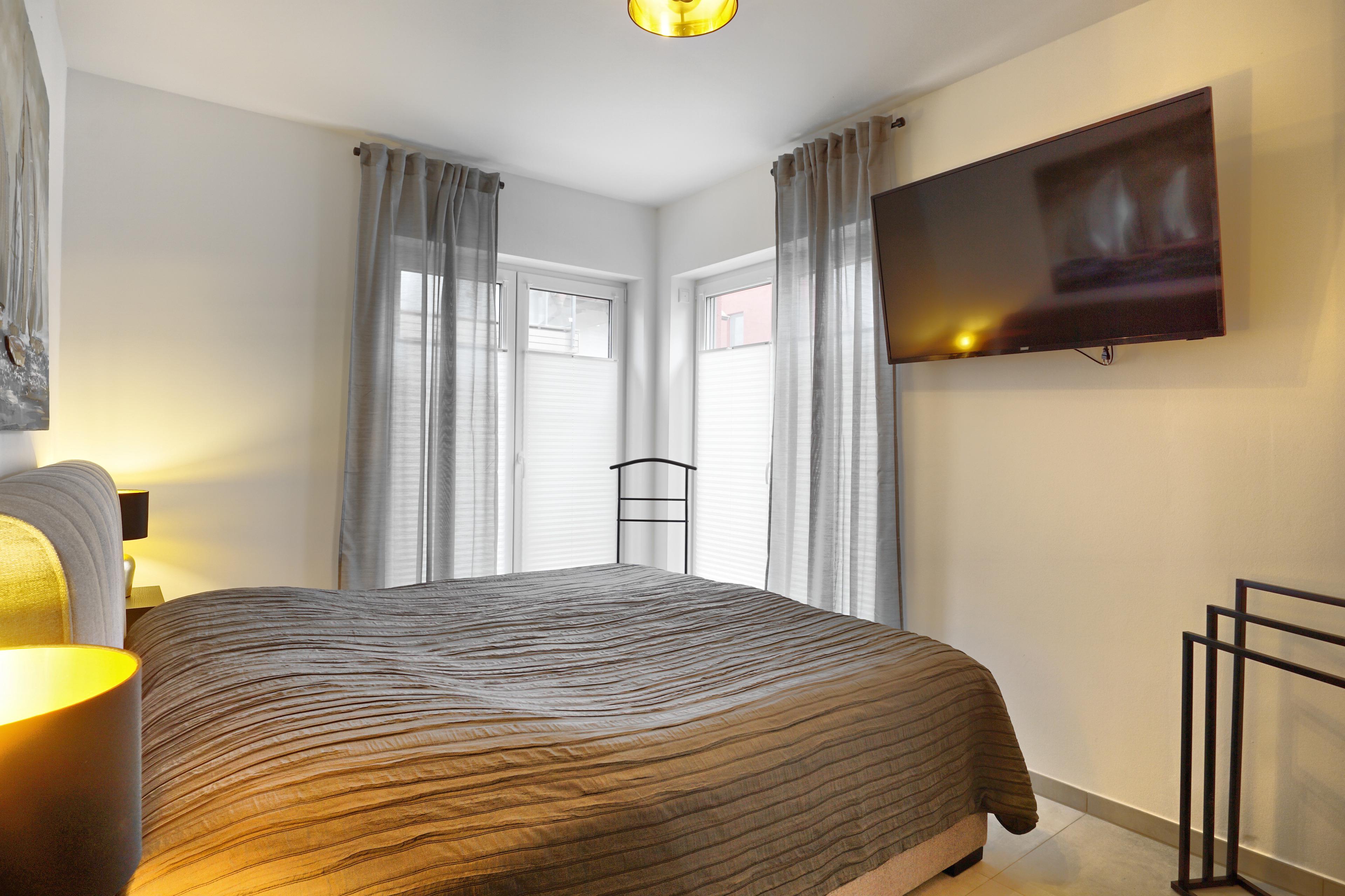 Das Schlafzimmer ist mit einem zusätzlichen Flat-TV ausgestattet, so dass Sie auch hier einen gemütlichen Fernsehabend ausklingen lassen können.