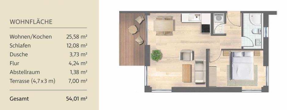 Wohnfläche 54 m²