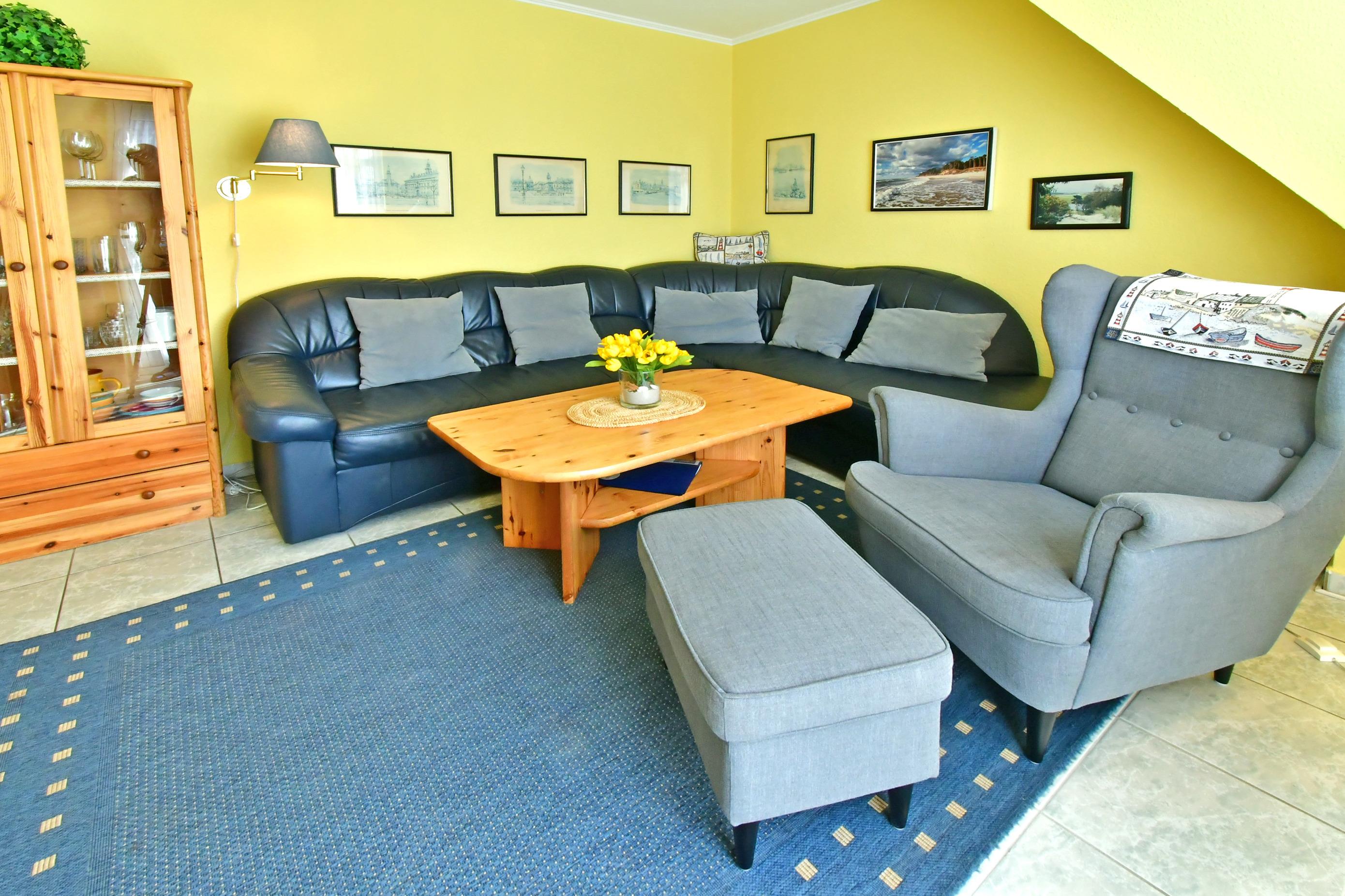 Am Anfang der Flaniermeile gelegen sind Einkaufsmöglichkeiten, der Hafen, sowie der Boddendeich, der zum Fahrradfahren und zum beobachten der Kraniche einlädt, ganz nah.