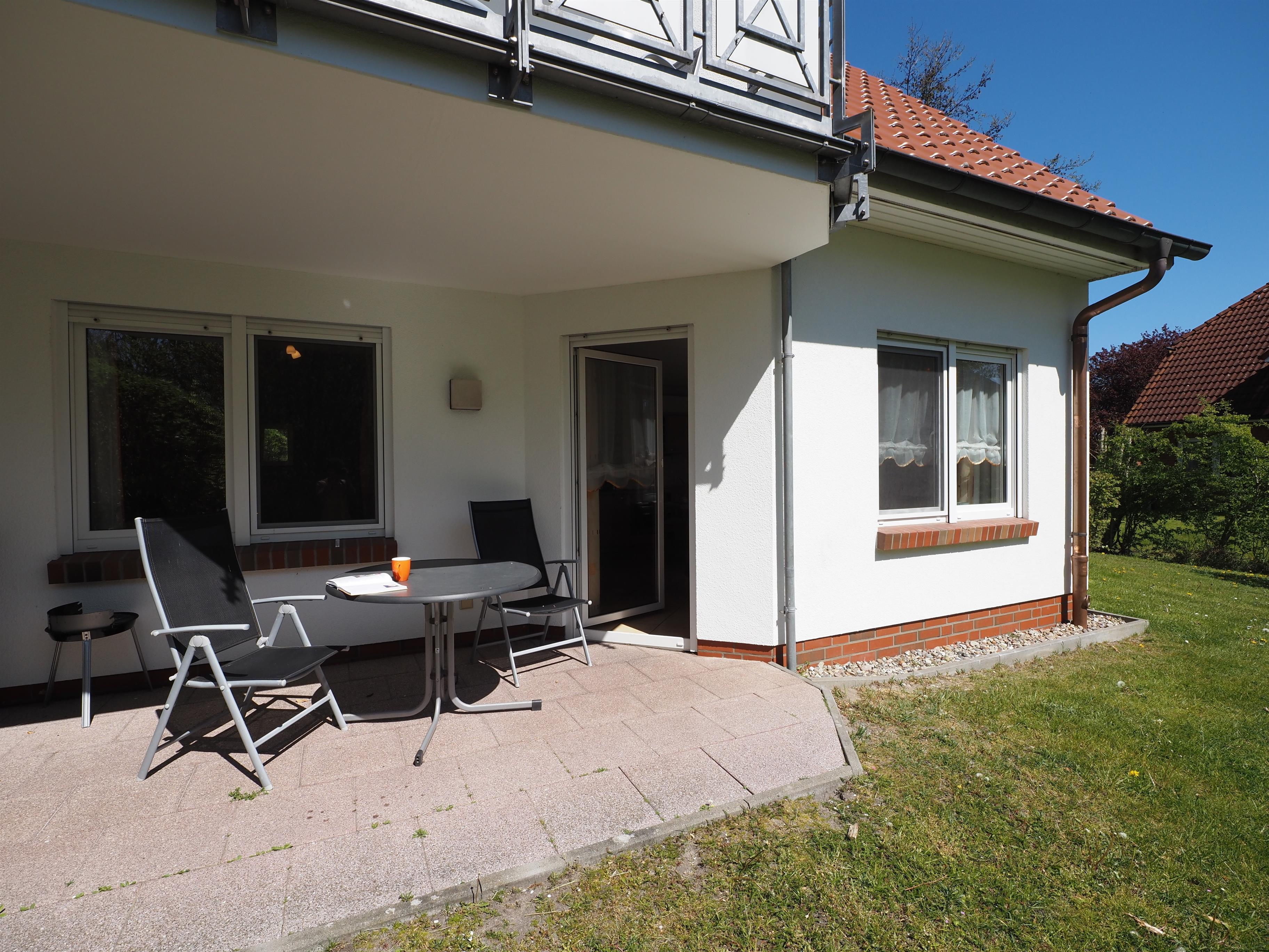 Die Fewo hat eine sonnige, überdachte Terrasse und lädt im Sommer an lauen Abenden zum Verweilen ein.