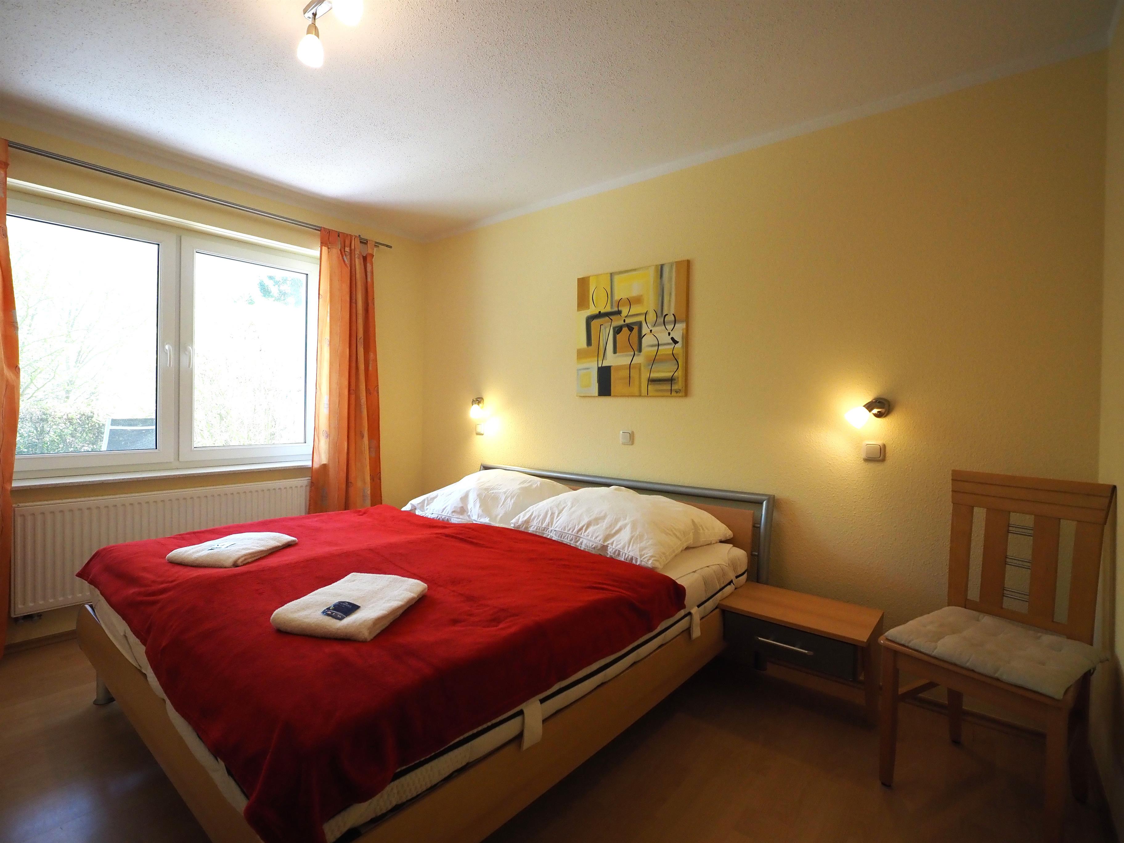 Dieses Feriendomizil ist ideal für 4 Personen. Es verfügt über einen Schlafraum mit Doppelbett, einen Schlafraum mit zwei Einzelbetten und viel Schrankplatz in beiden Zimmern. Im Bad finden Sie eine ebenerdige Dusche mit WC, Handtuchwärmer, zusätzlich Fußbodenerwärmung und Einbauradio.