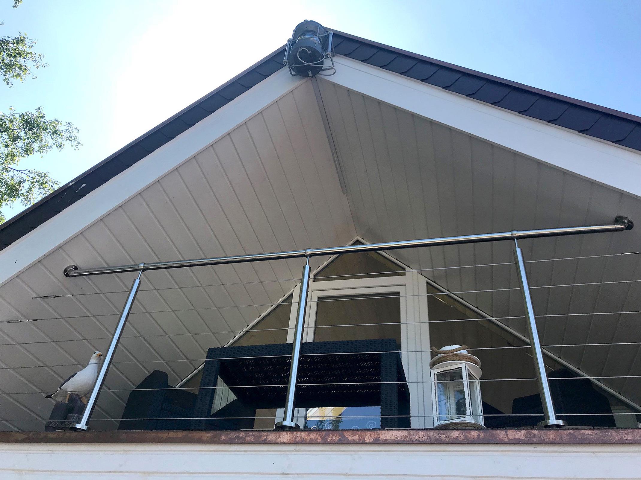 Der Zugang zur Wohnung erfolgt über eine Treppe, ähnlich wie hinauf in die Kommandobrücke eines Containerschiffes. Menschen mit Gehbehinderung raten wir von der Buchung dieser Unterkunft ab, für alle Anderen ist der Weg hinauf in das Piratennest kein Problem.